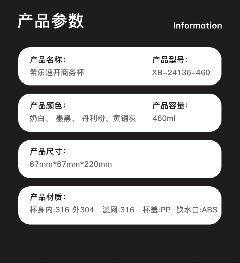 希乐(cille)速开商务杯460ml 单位:个 奶白