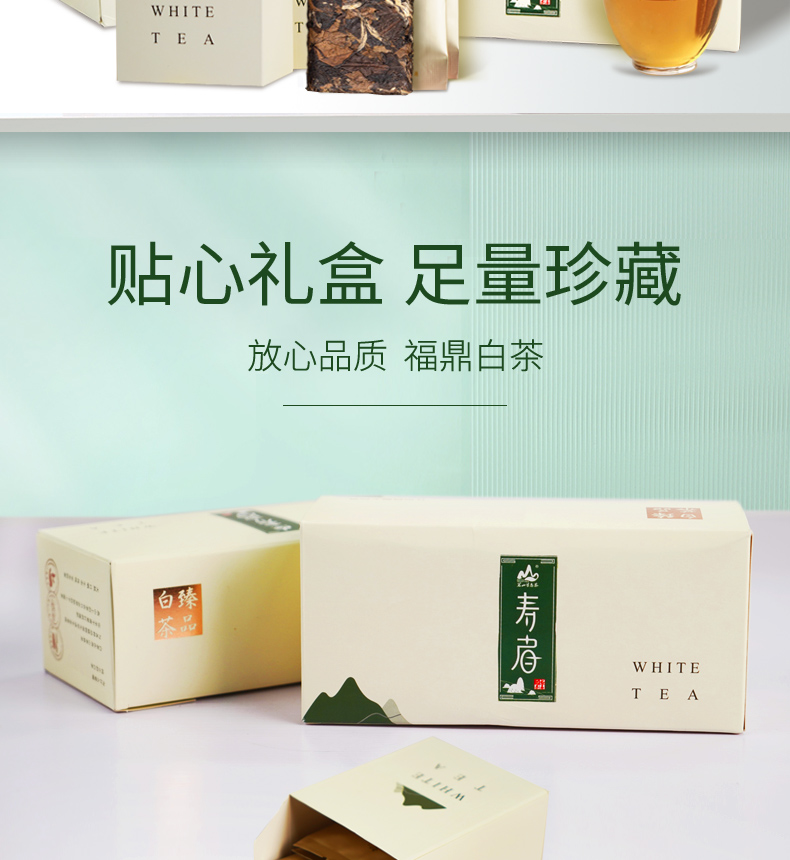 茗山生态茶 福鼎白茶饼干茶寿眉老白茶 小方片独立包装礼盒装共400克