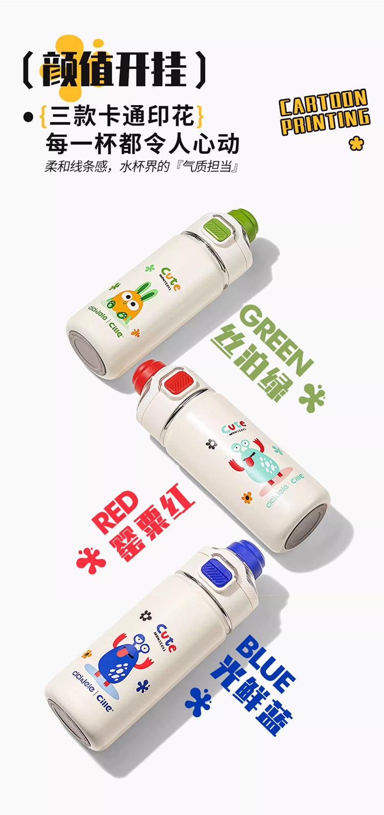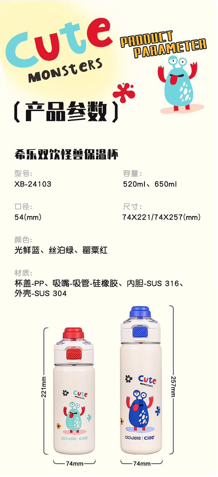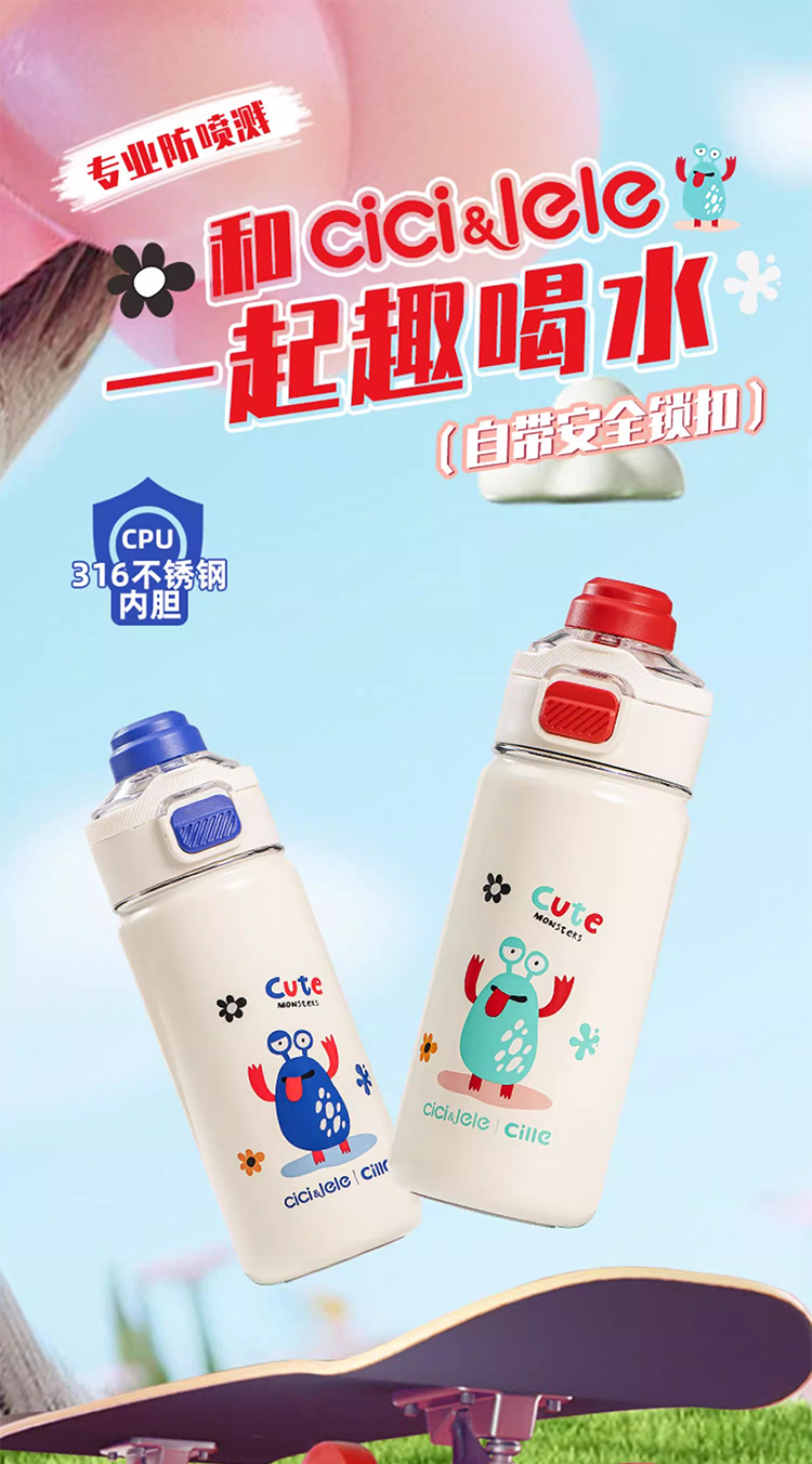 希乐(cille)双饮怪兽保温杯650ml 单位:个 丝泊绿