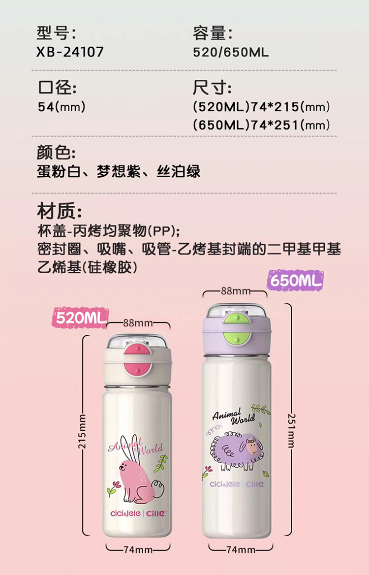 希乐(cille)新宠双饮保温杯650ml 单位:个 梦想紫