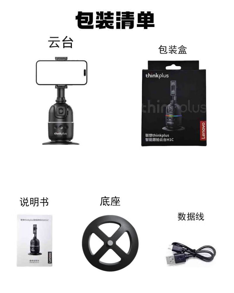 联想(Lenovo) H1C 工作时长2-4小时 智能AI跟拍云台 黑色(单位:个)