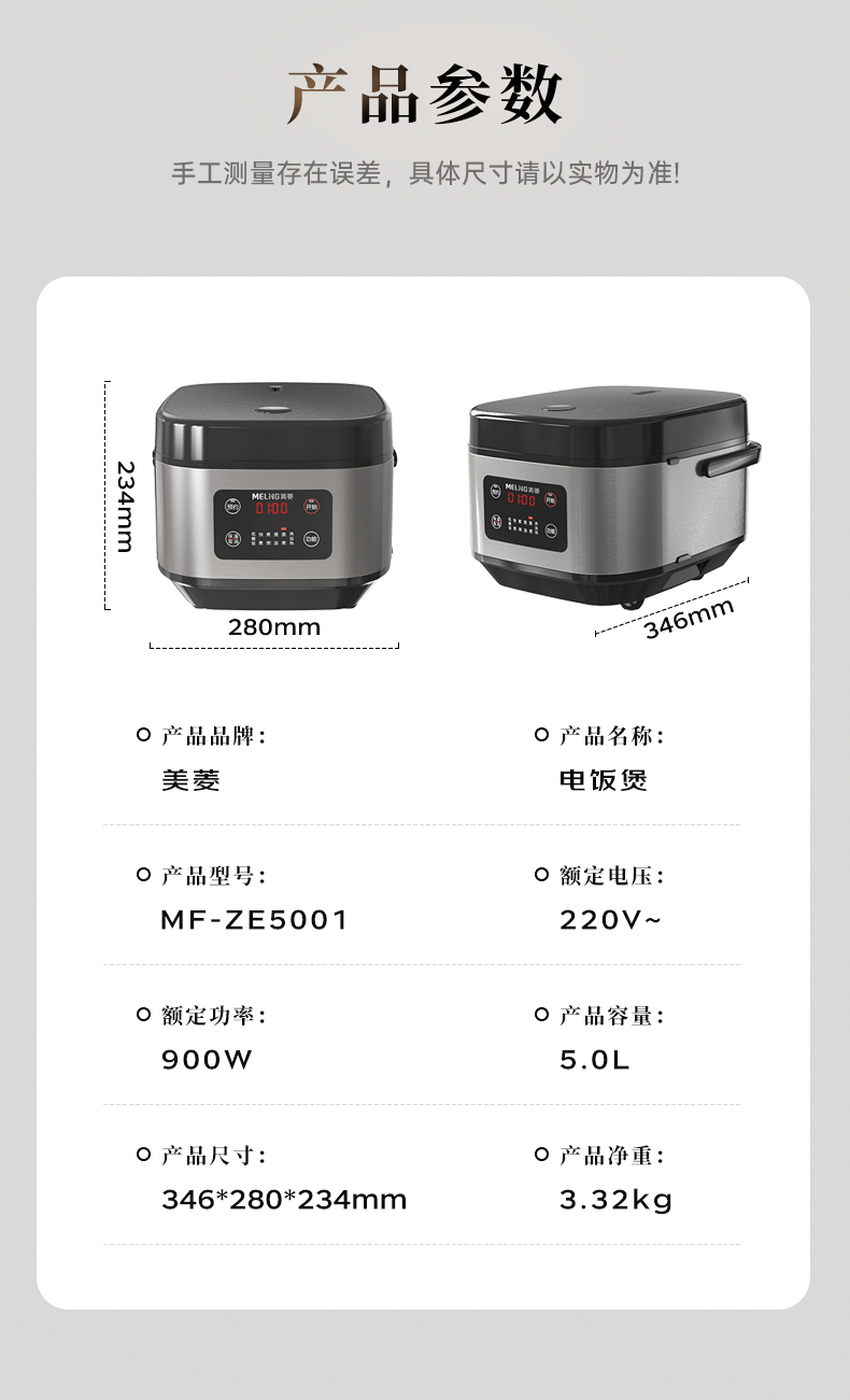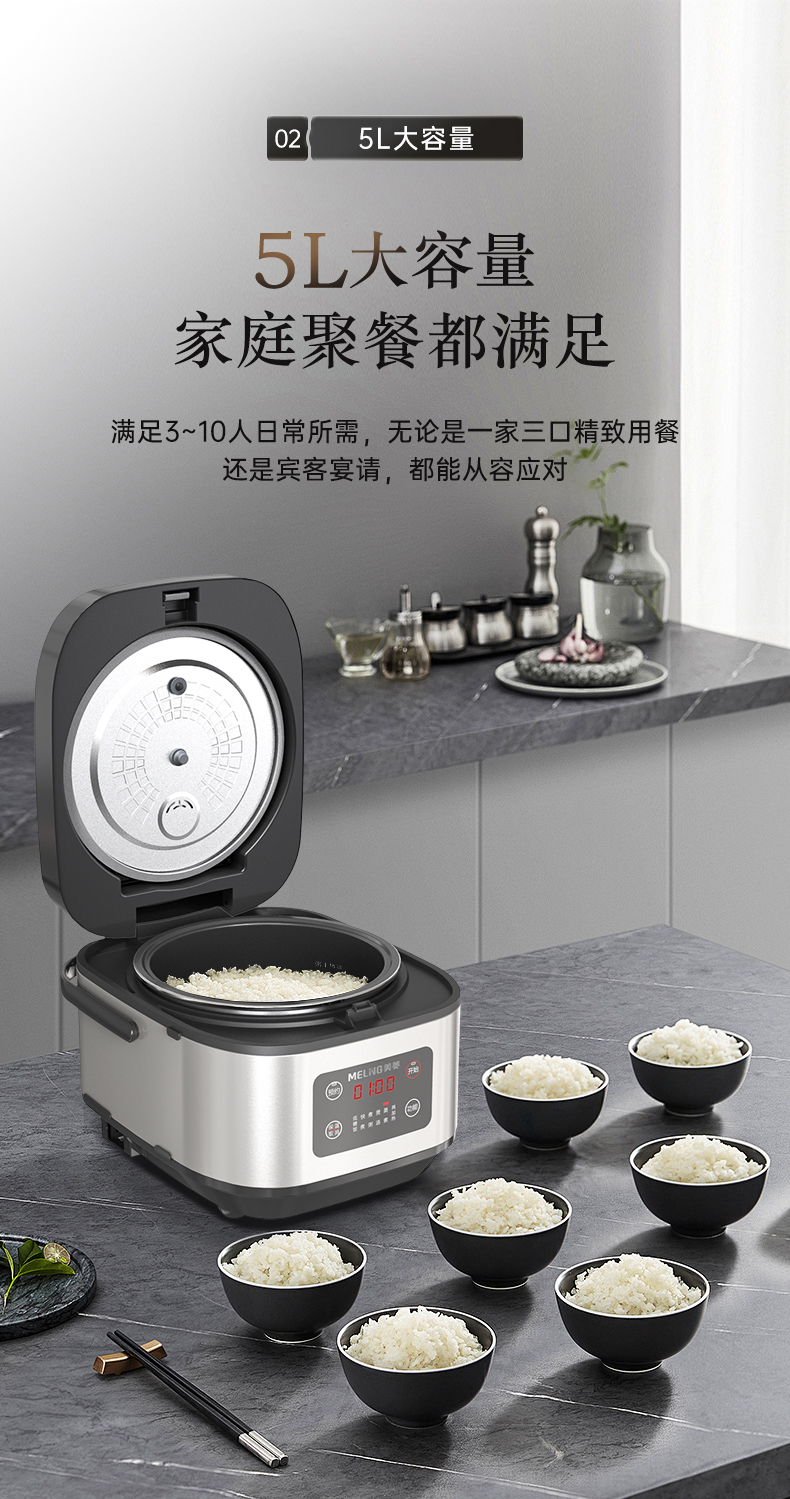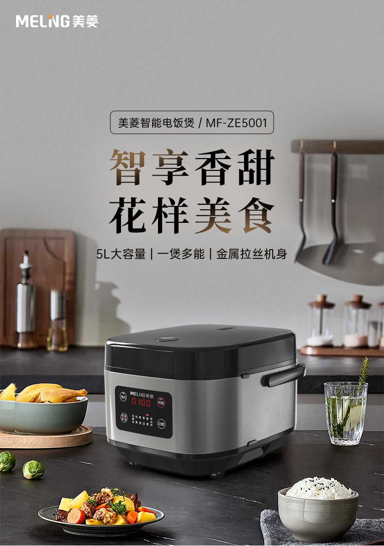 美菱(Meiling)家用大容量5L电饭煲MF-ZE5001(单位/台) 黑色