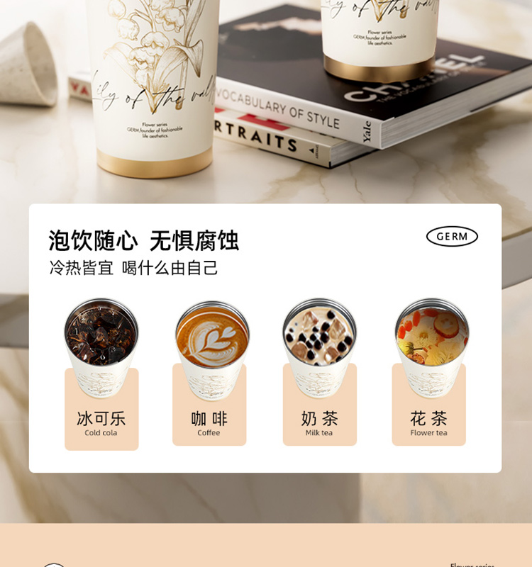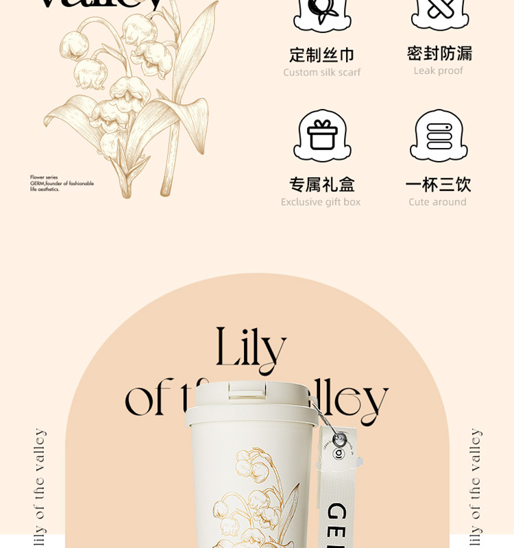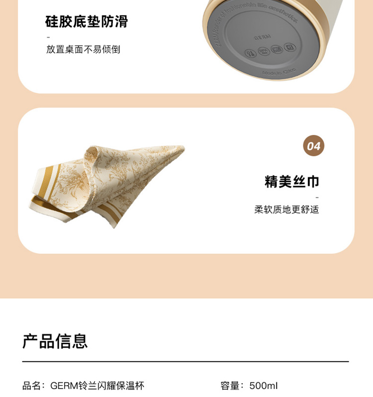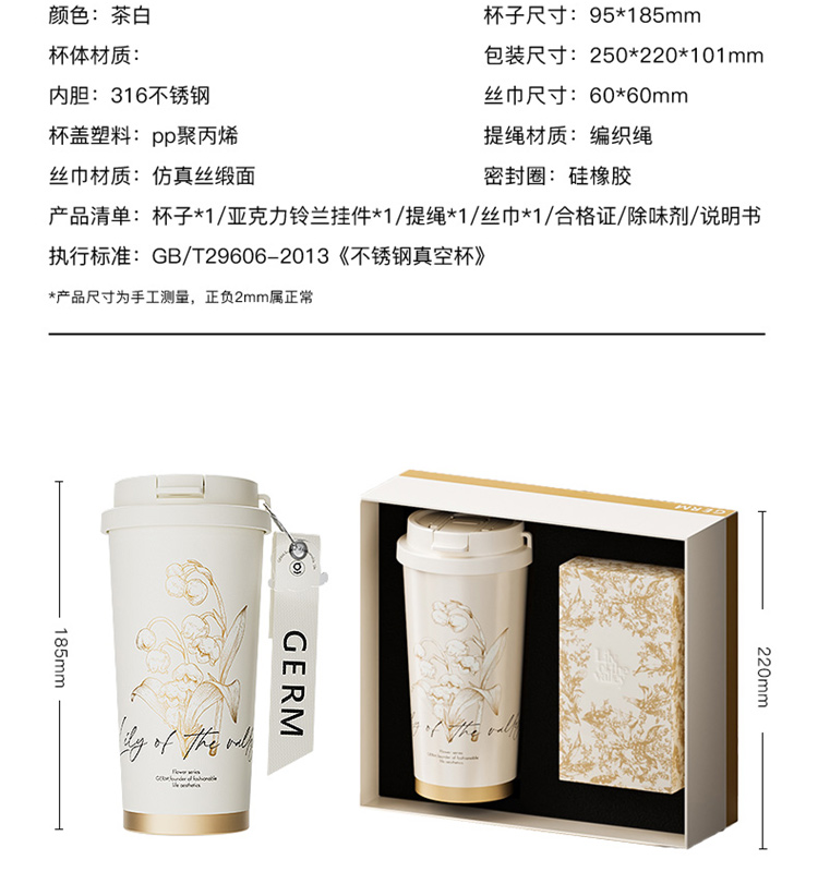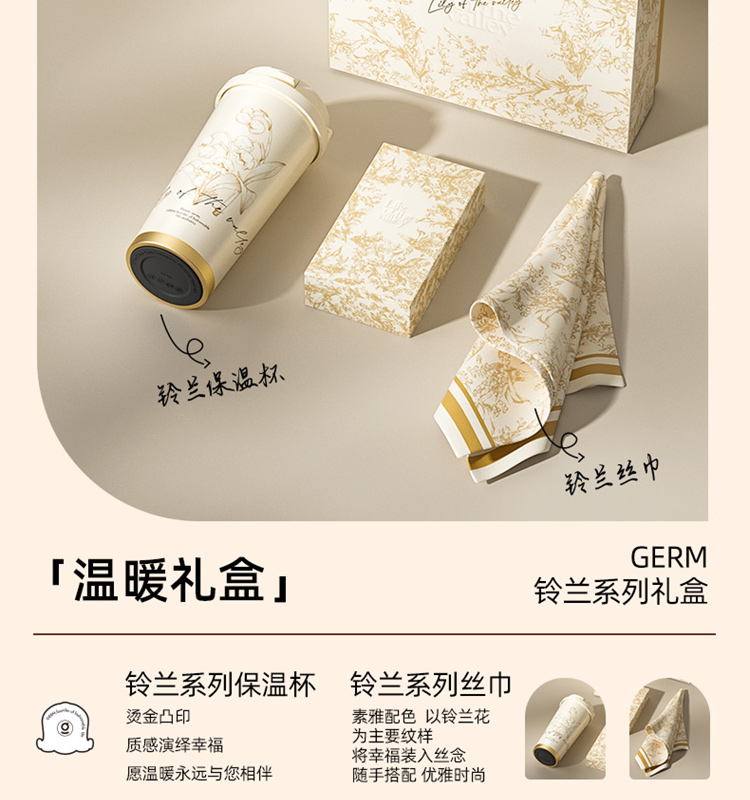格米 GERM铃兰系列礼盒 铃兰闪耀保温杯+丝巾 咖啡杯*1 、丝巾*1 黄白色(单位:套)