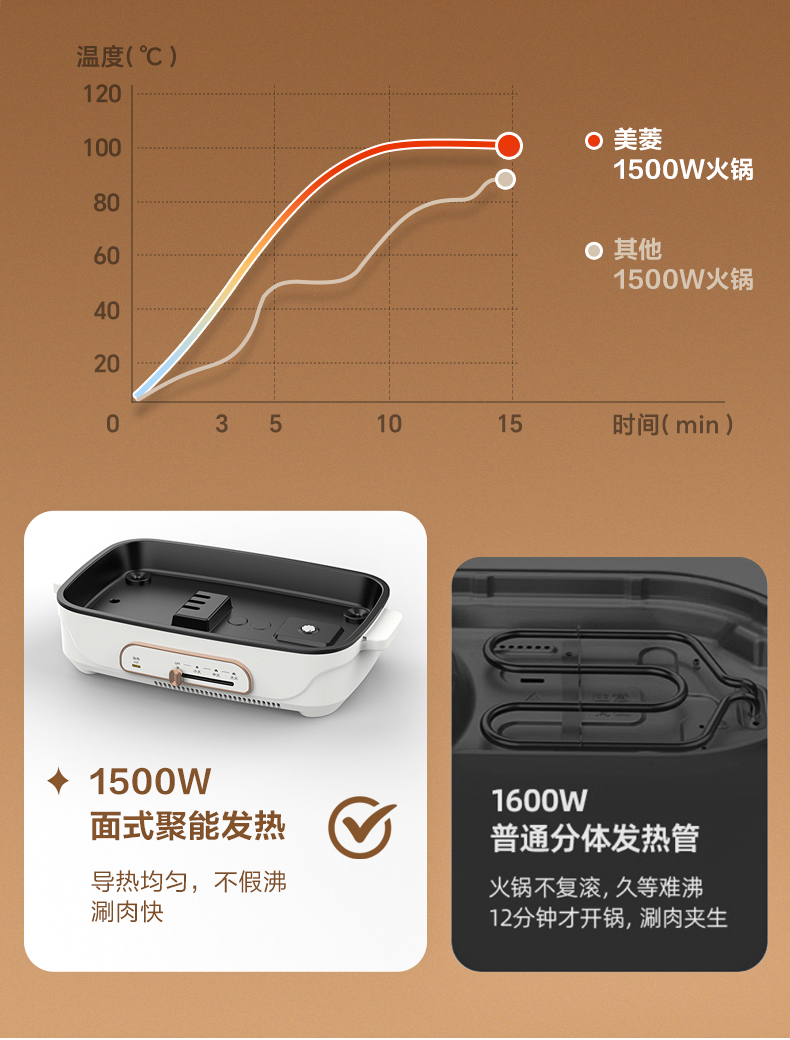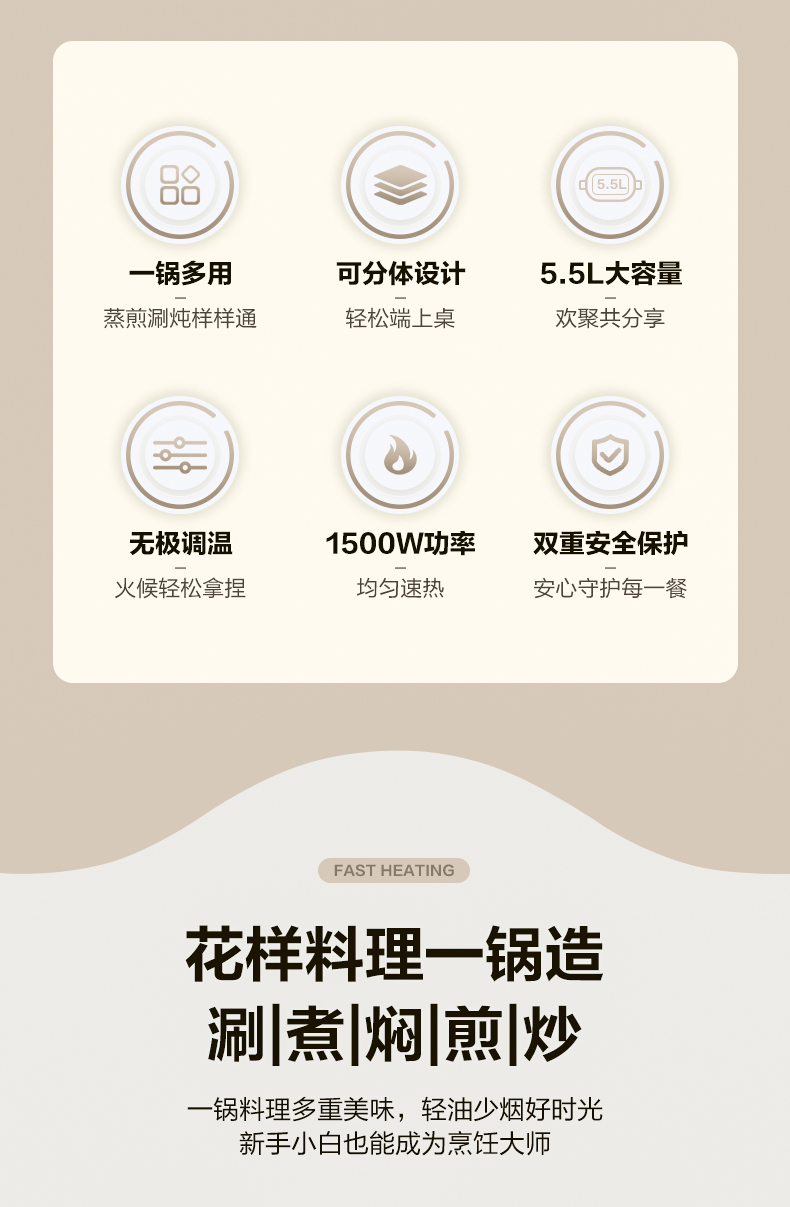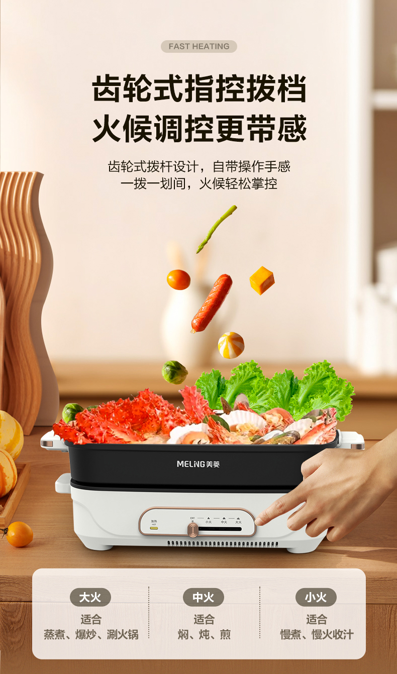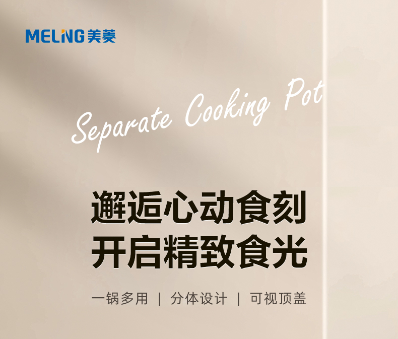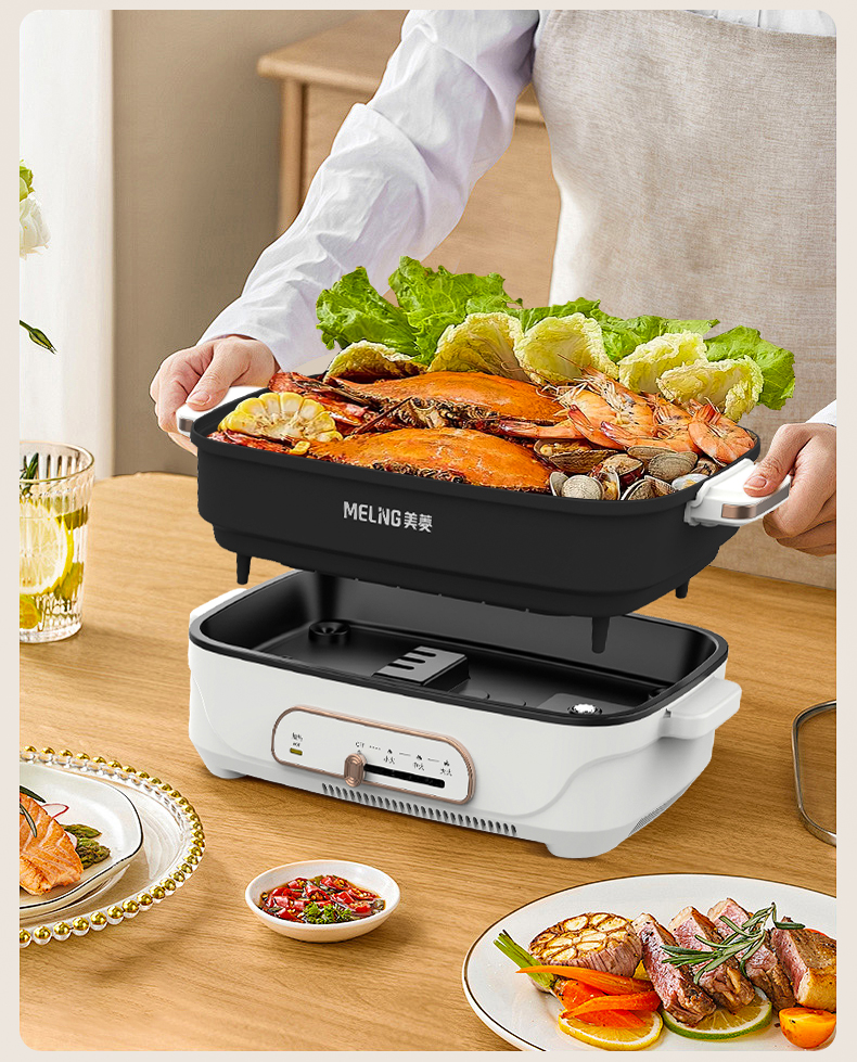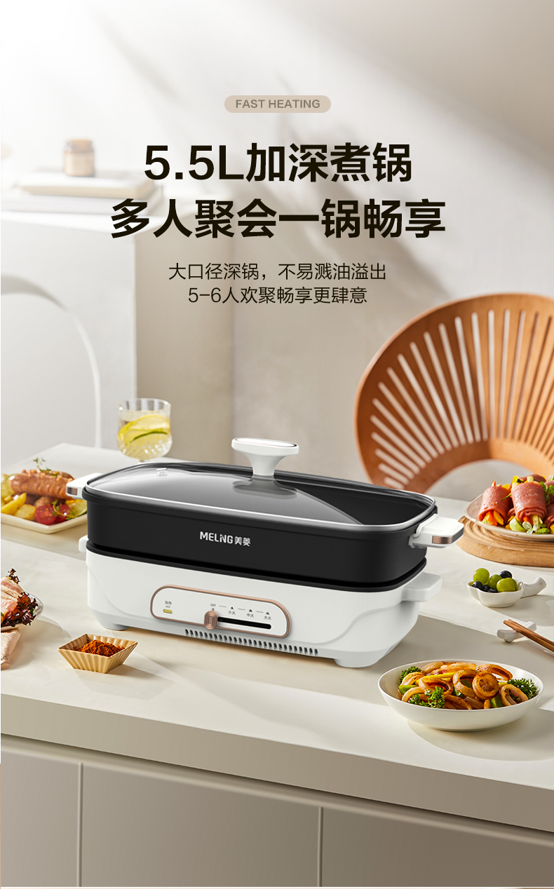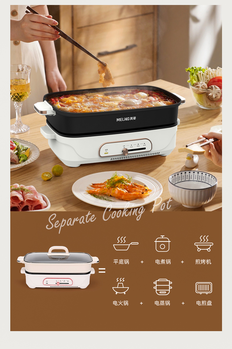 美菱(Meiling)家用5.5L大容量多功能分体式料理锅电煮锅电火锅MT-HZ60H5(单位/台) 白色