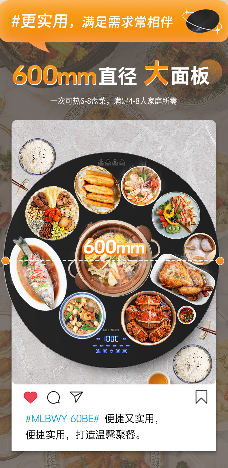 美菱(Meiling)暖菜板 60CM保温菜板 长效定时9档温控MLBWY-60BE(单位/台) 黑色