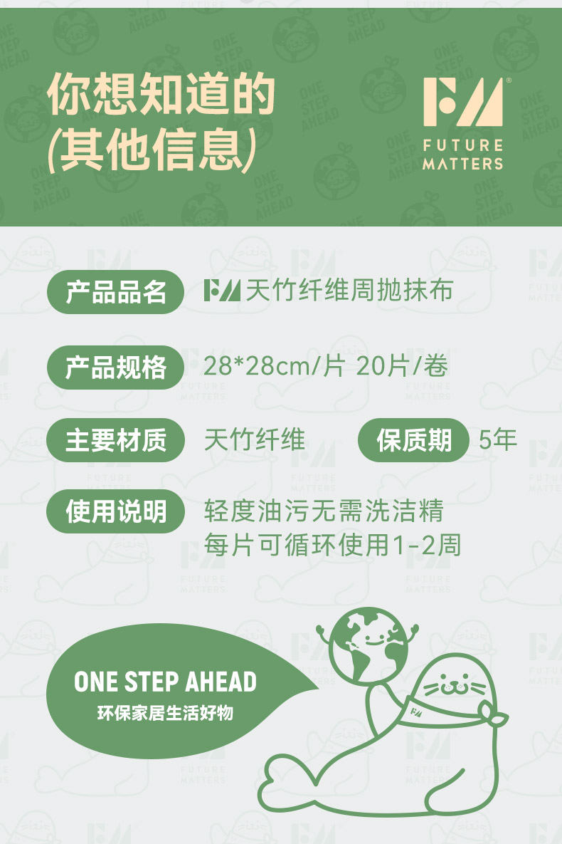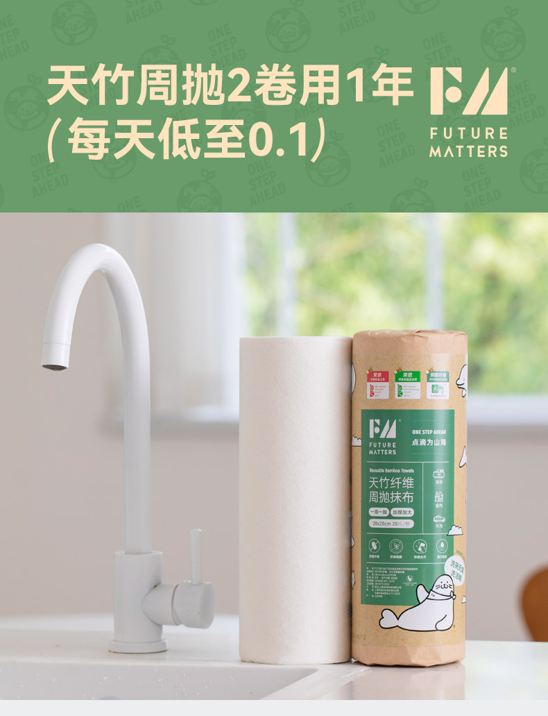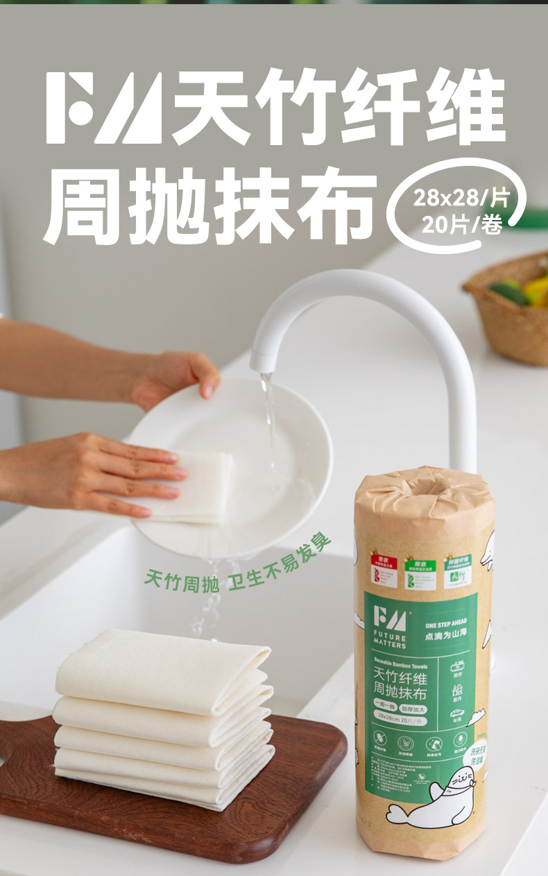 FUTURE MATTERS 天竹纤维周抛抹布经典款 20片/卷 28*28cm 本白色(单位:卷)