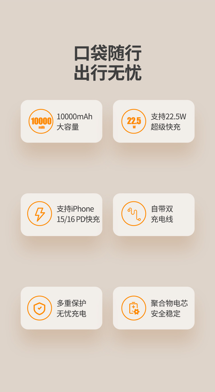 幻响(i-mu)超级快充移动电源S12【1000mAh】(个) 米色