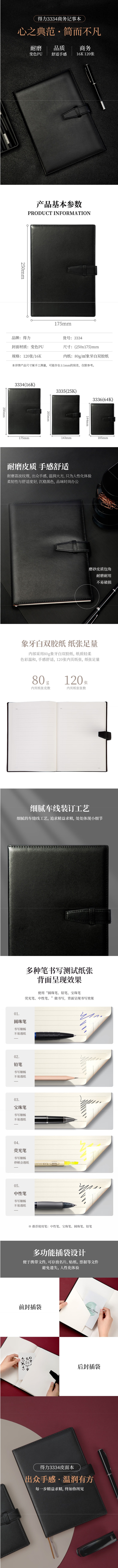 得力(deli) 扣带皮面本记事本笔记本 3334 16K 120页 黑色(单位:本)