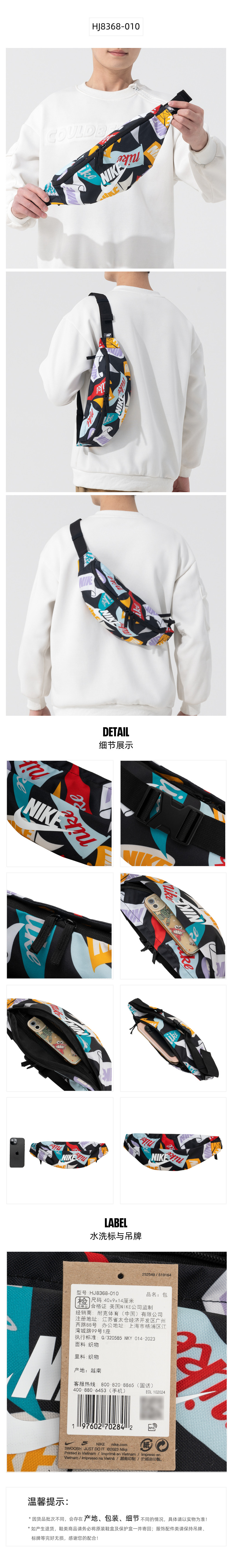 耐克(NIKE) 中性运动腰包胸包 HJ8368-010 40*9*14cm 黑/黑/白(单位:个)