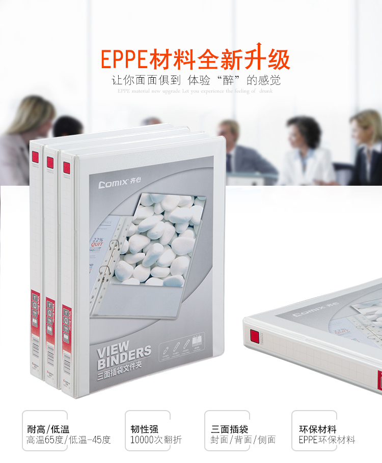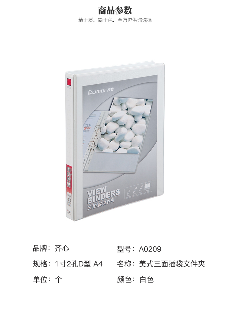 齐心(COMIX) 1寸2孔D型美式三面插袋文件夹 A0209 A4 白色(单位:个)