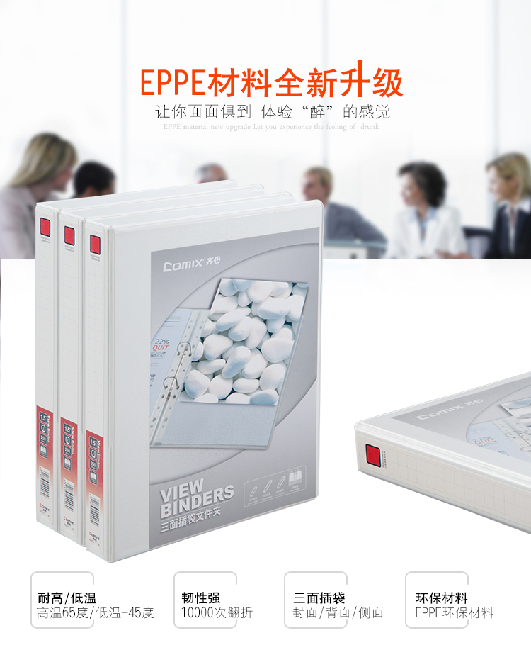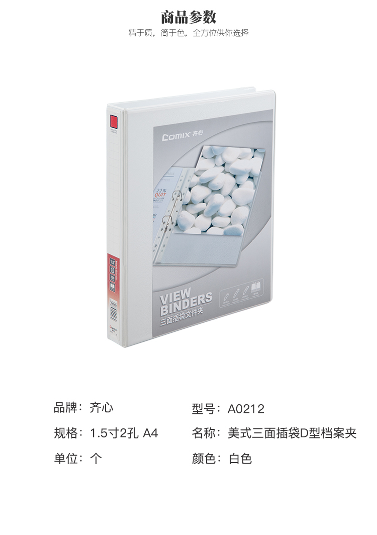 齐心(COMIX) 1.5寸2孔美式三面插袋D型档案夹 A0212 A4 白色(单位:个)