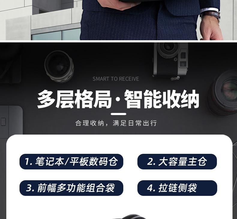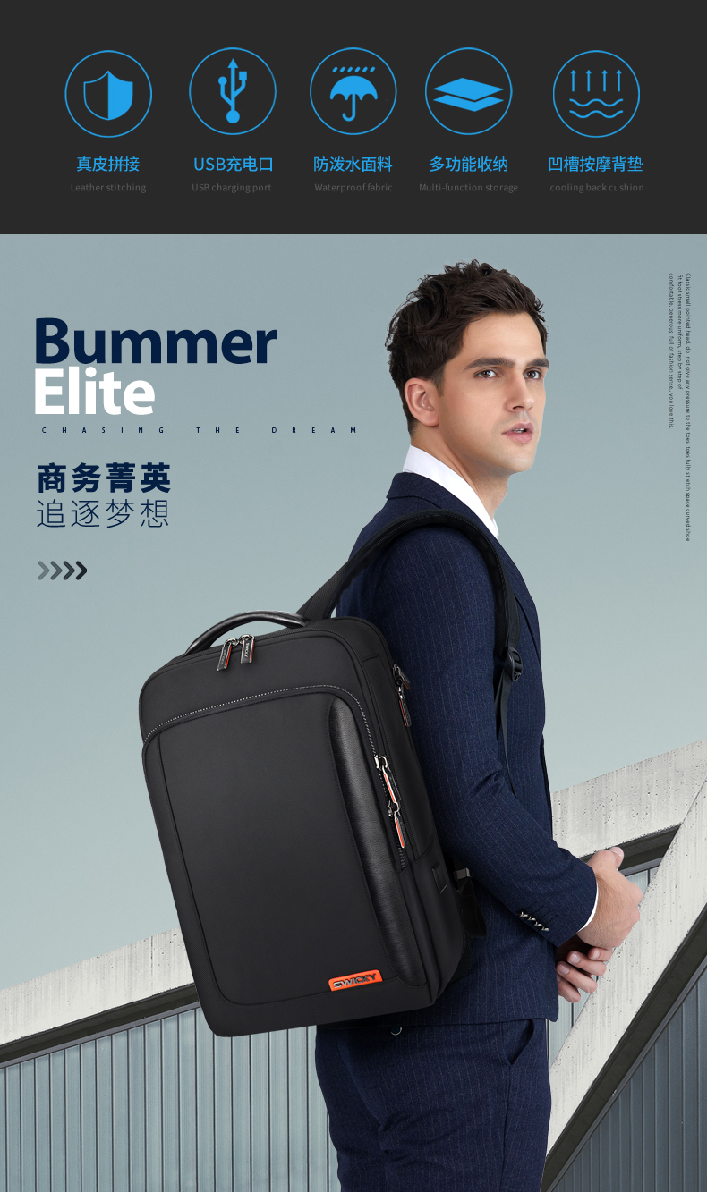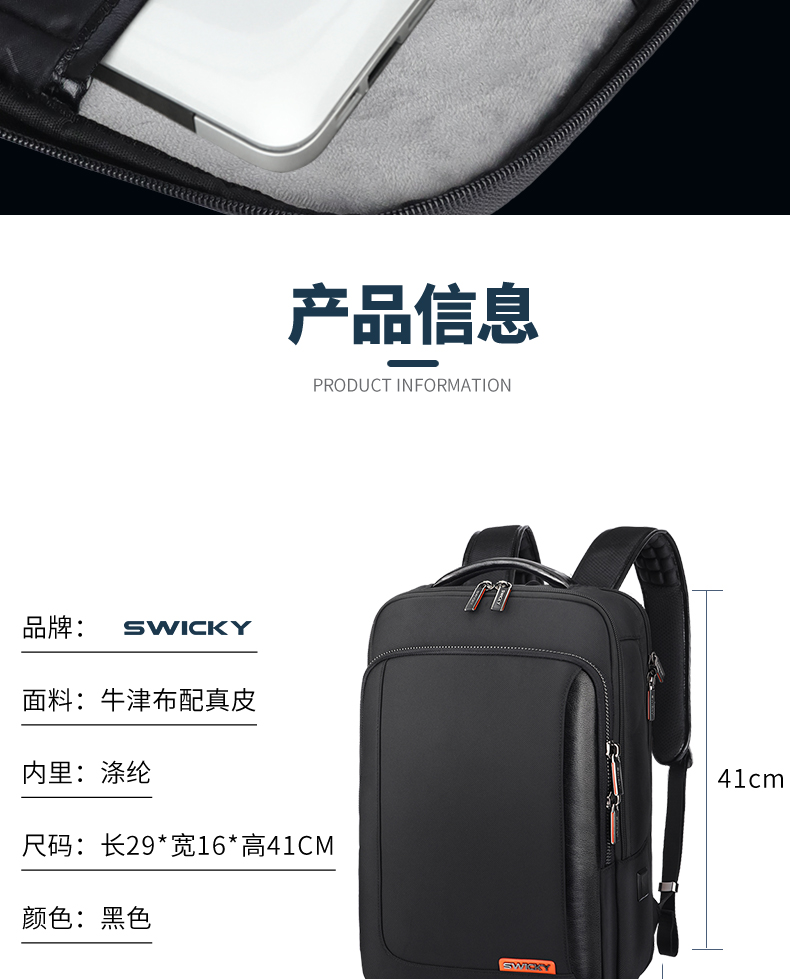 瑞驰(SWICKY) 高档商务定型 背包 81033 290*160*410mm 曜石黑(单位:个)