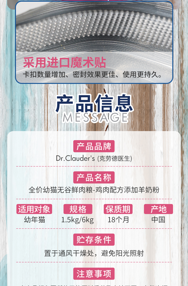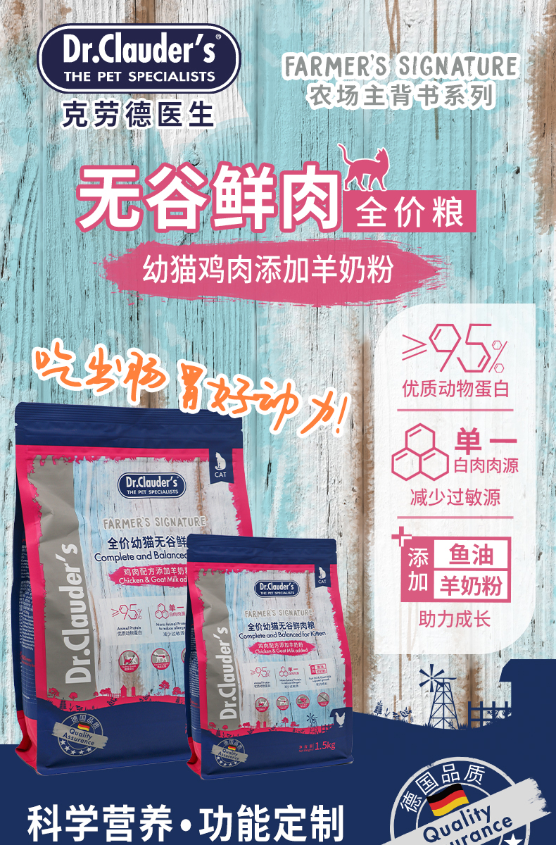 克劳德医生 幼猫粮 幼猫用无谷鲜肉粮鸡肉配方添加羊奶粉 6kg 蓝色(单位:袋)