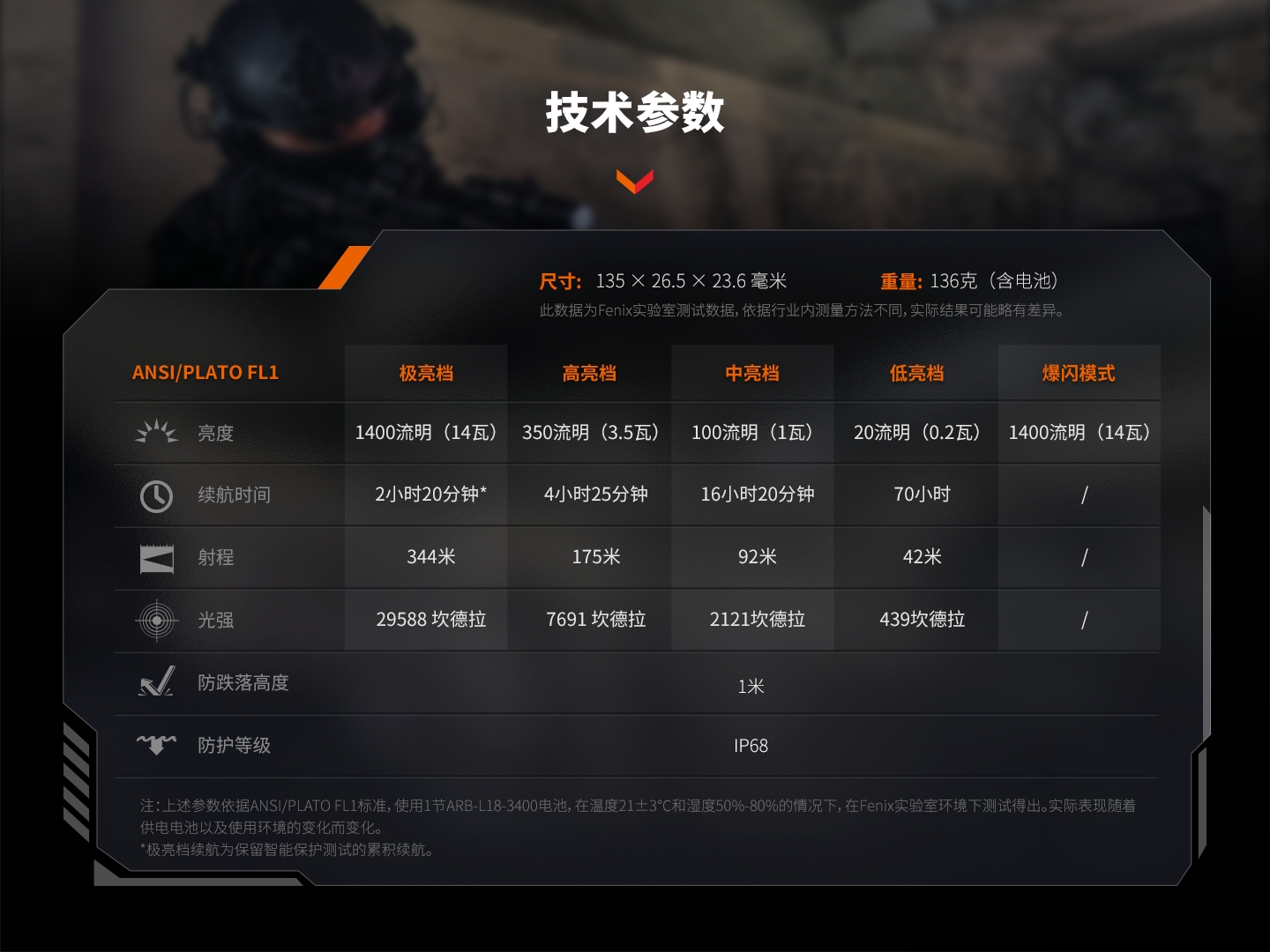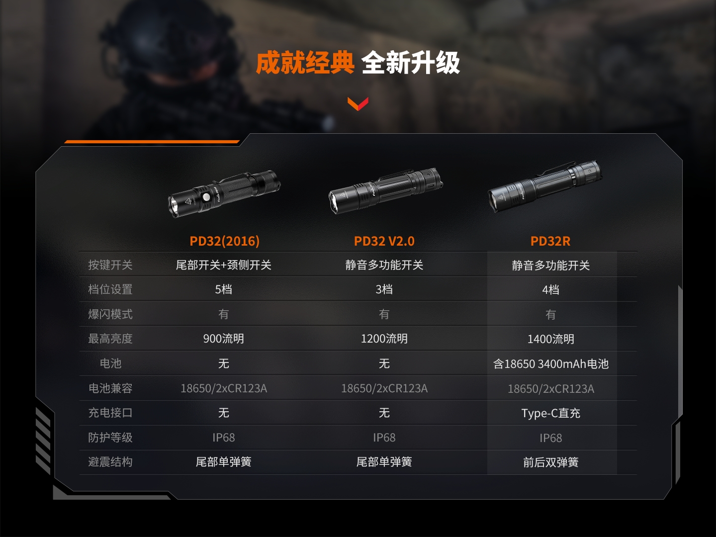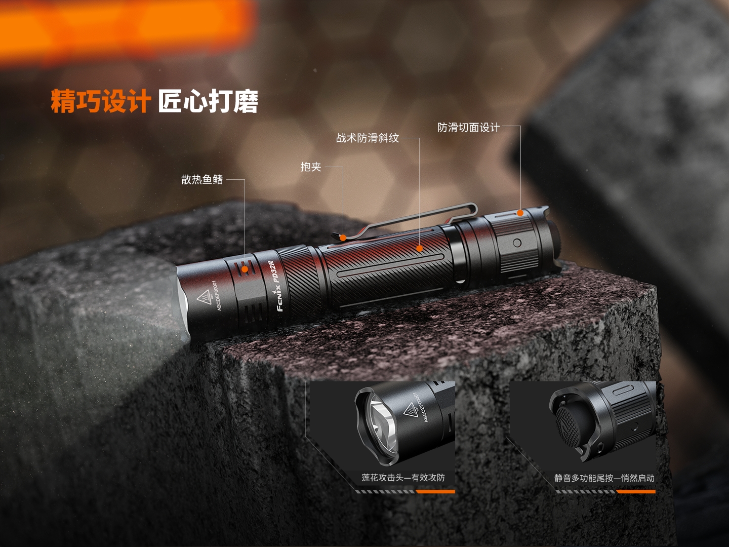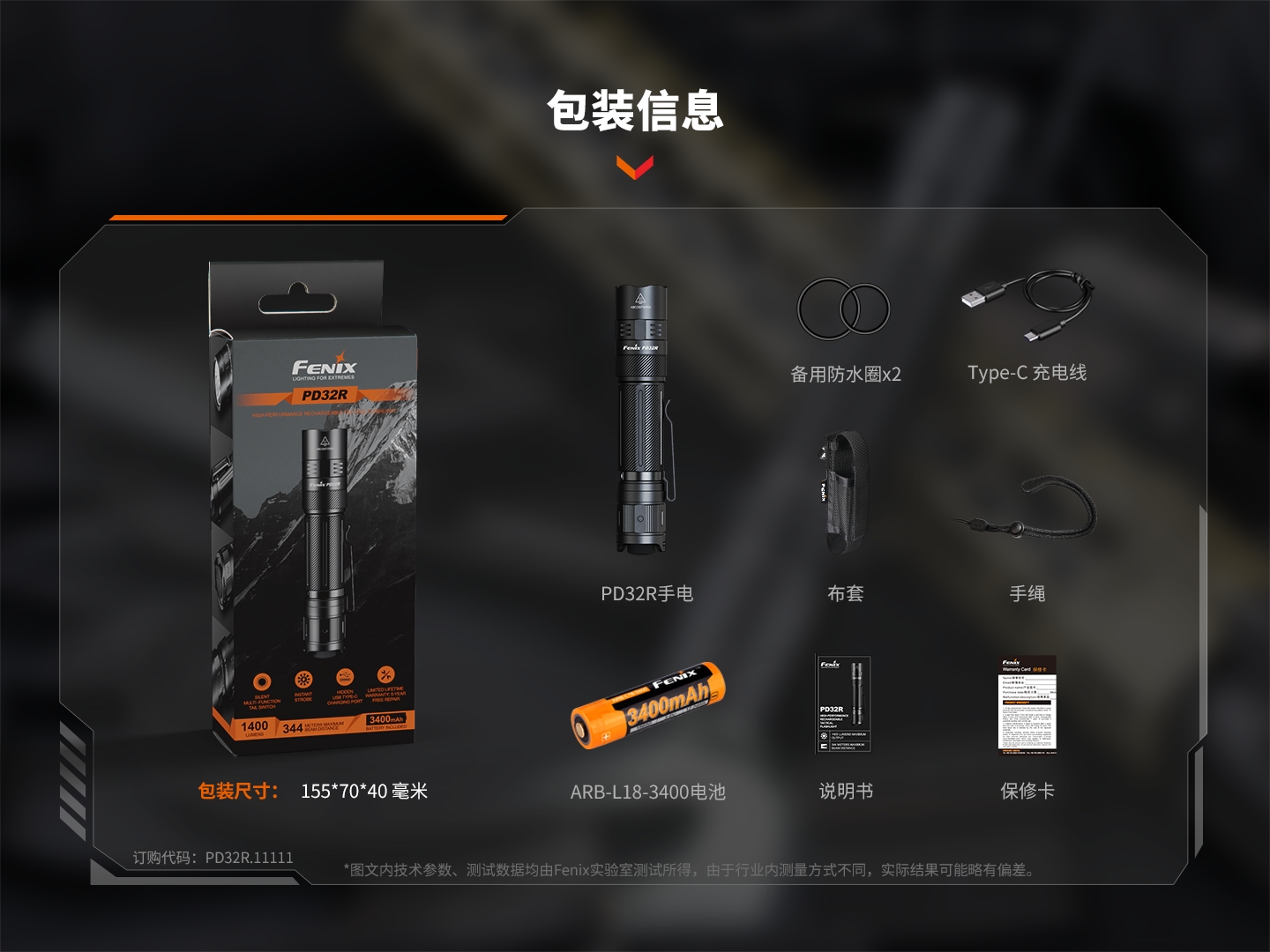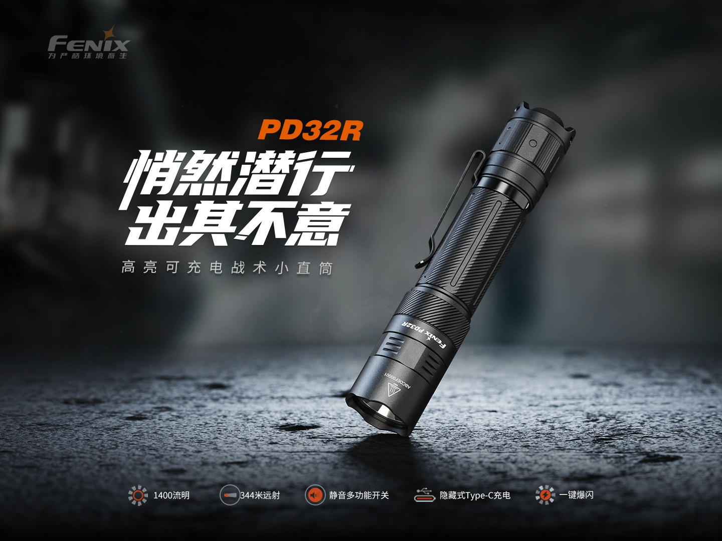 FENIX 战术小直筒手电 PD32R 1400流明344米射程 黑色(单位:套)