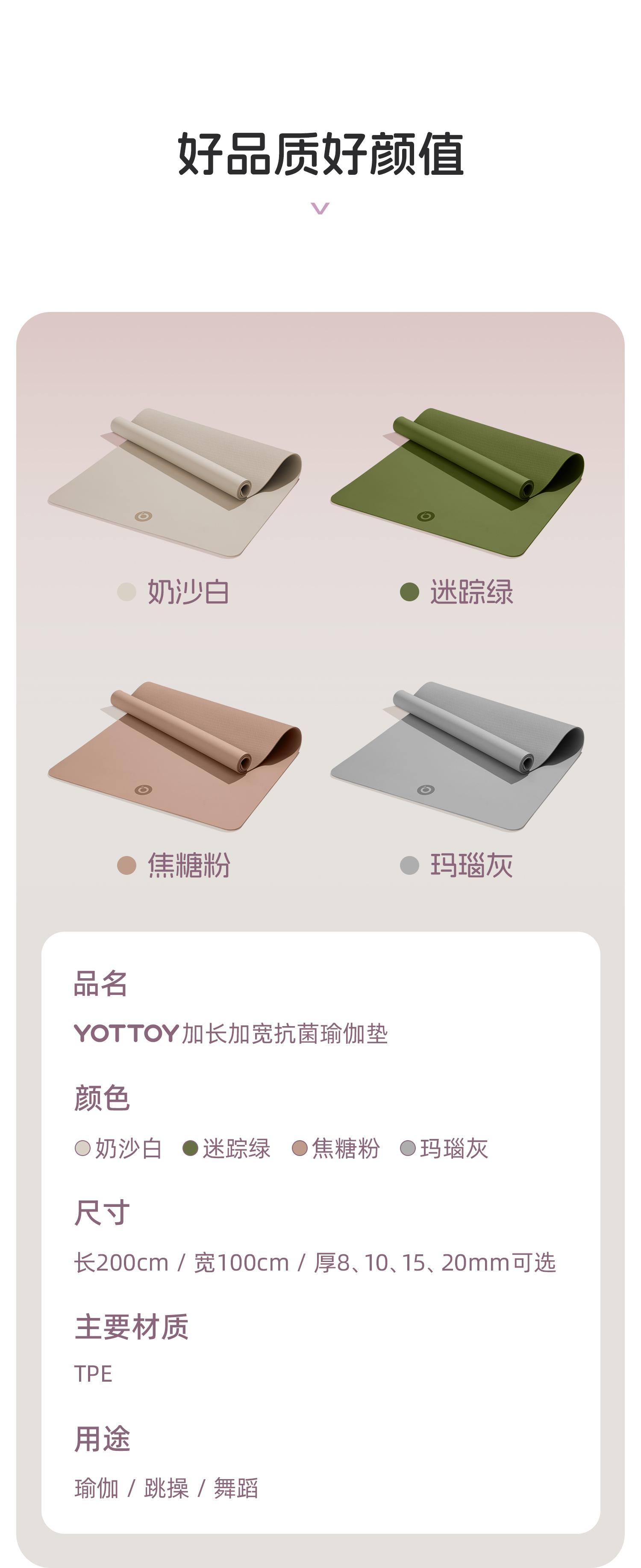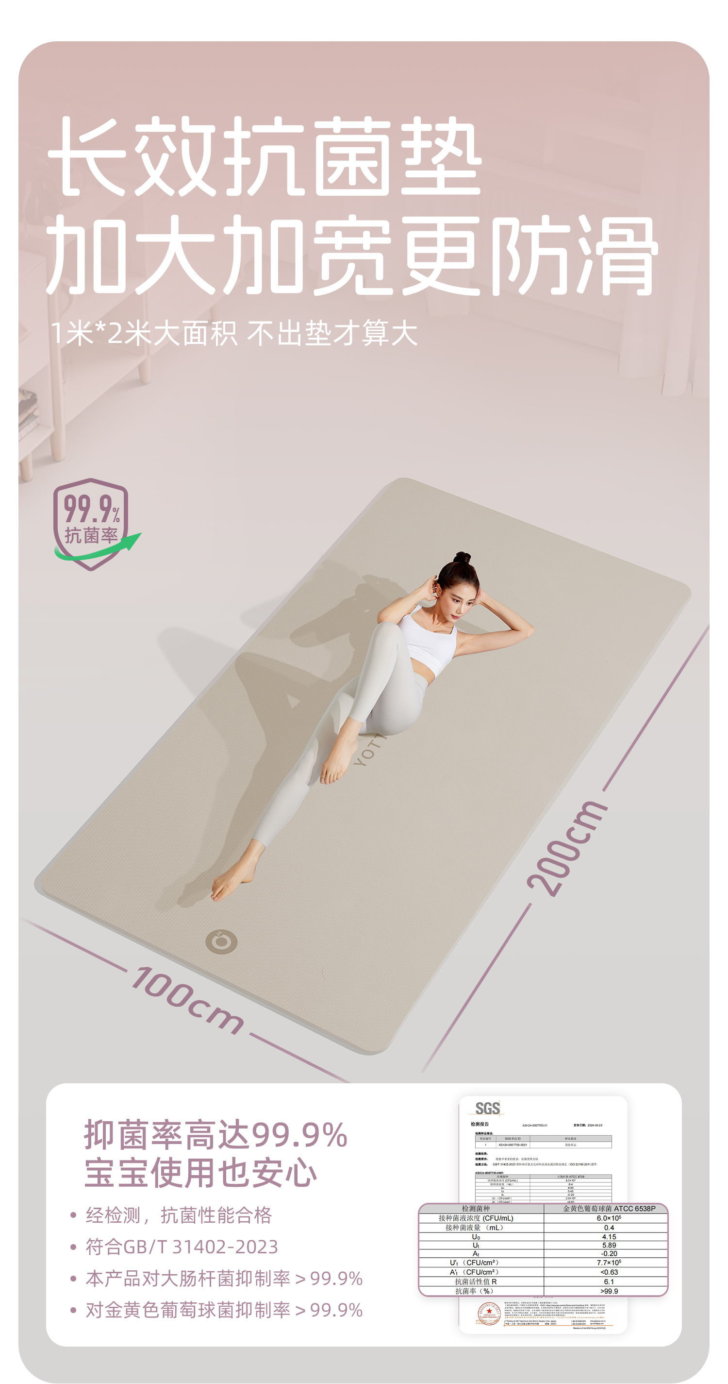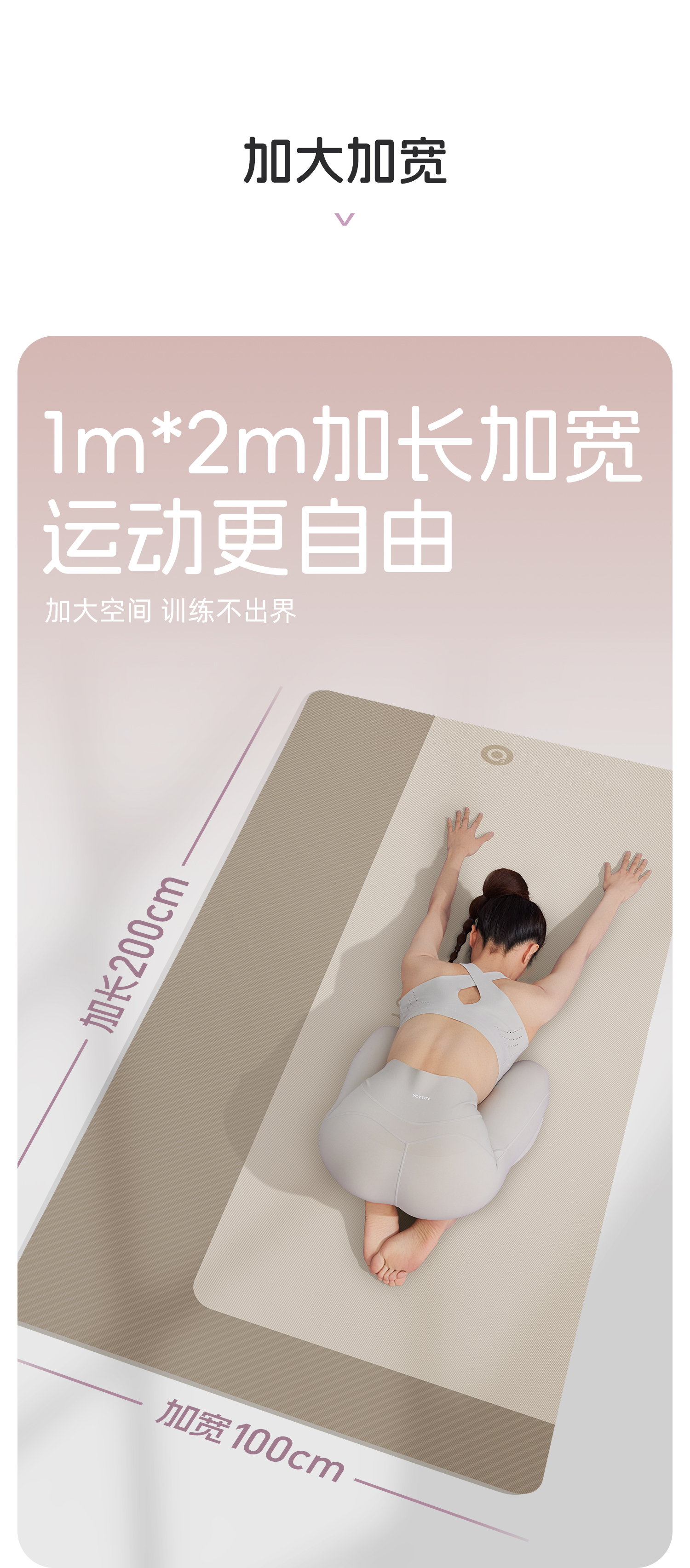 YOTTOY 抗菌瑜伽垫健身垫防滑减震静音家用加厚15mm yjdx2412x1A00015100j002 200*100cm 白色(单位:条)