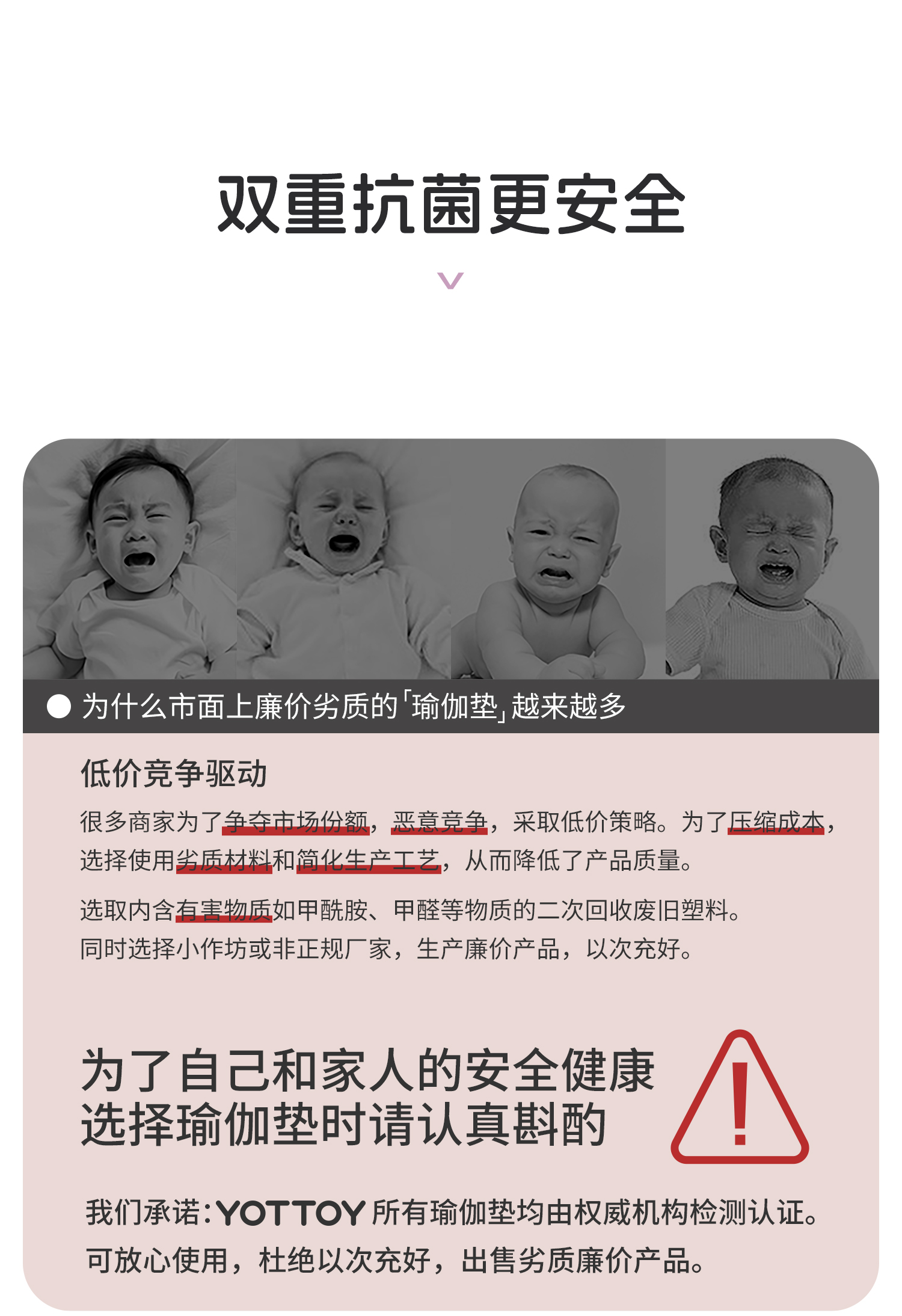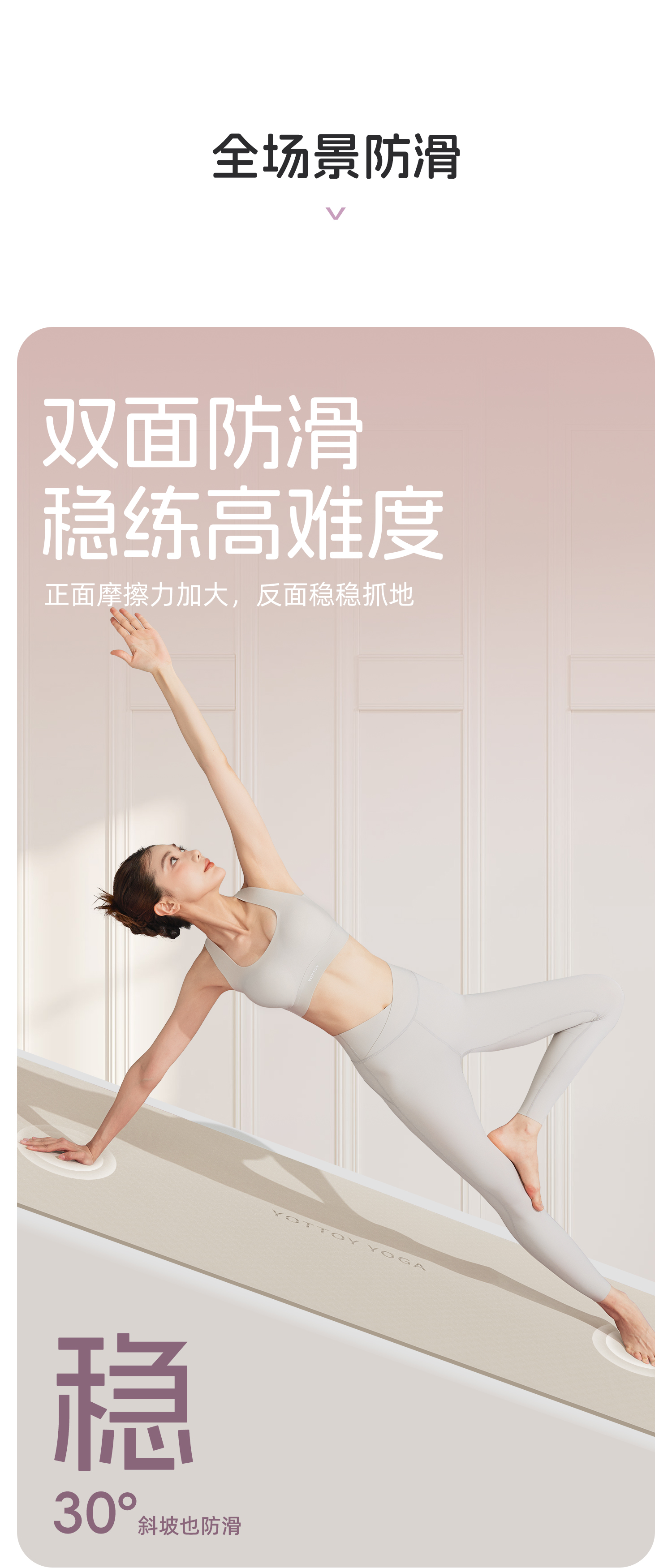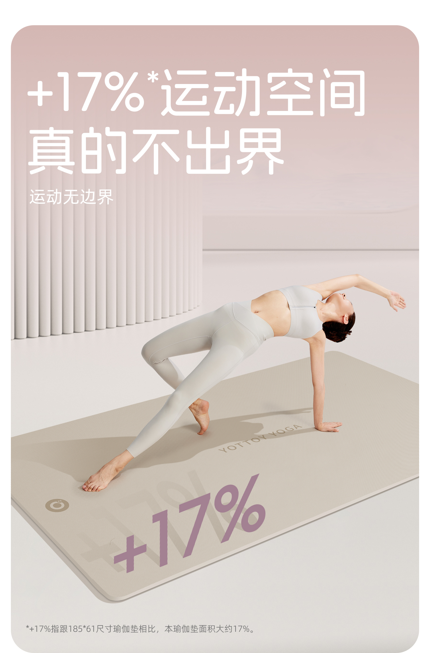 YOTTOY 抗菌瑜伽垫健身垫防滑减震静音家用加厚15mm yjdx2412x1A00015100j002 200*100cm 白色(单位:条)