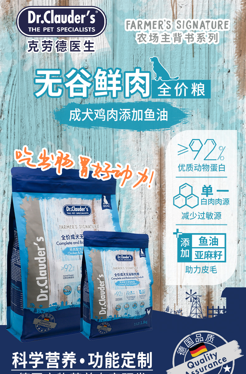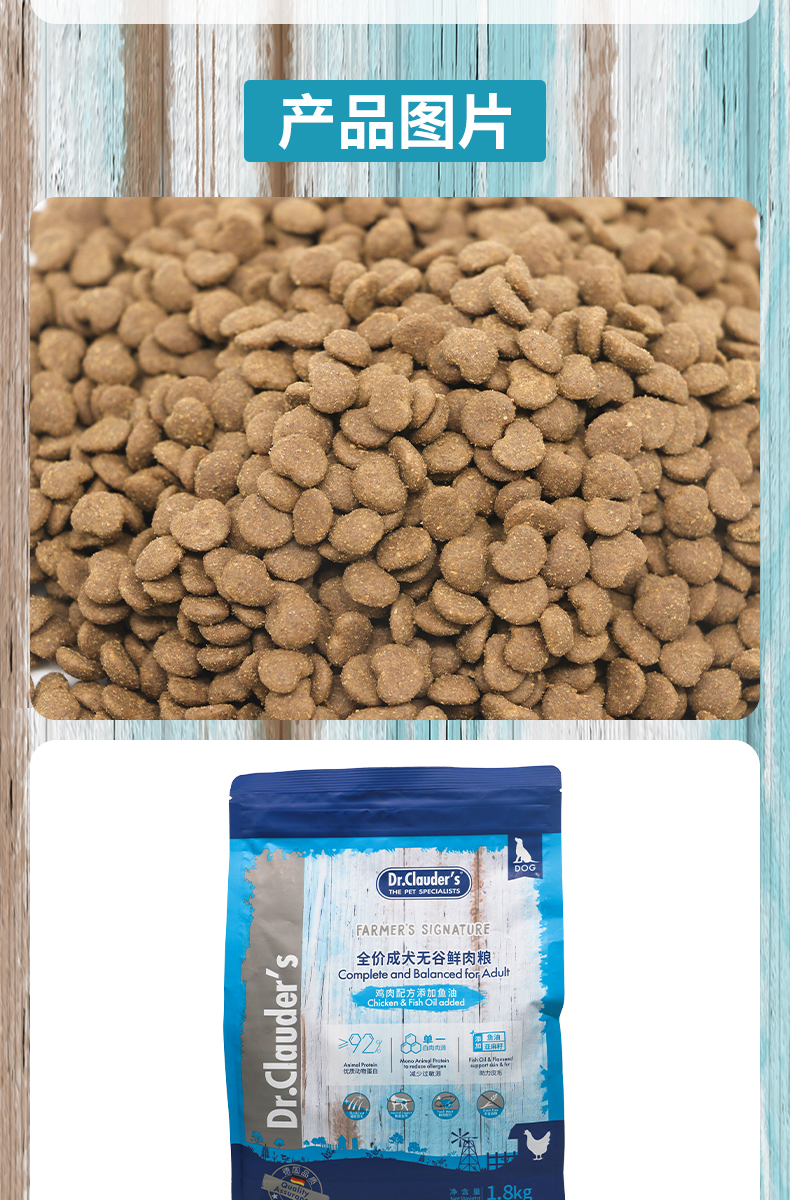 克劳德医生 成犬粮 成犬用无谷鲜肉粮鸡肉配方添加鱼油 1.8kg 蓝色(单位:袋)