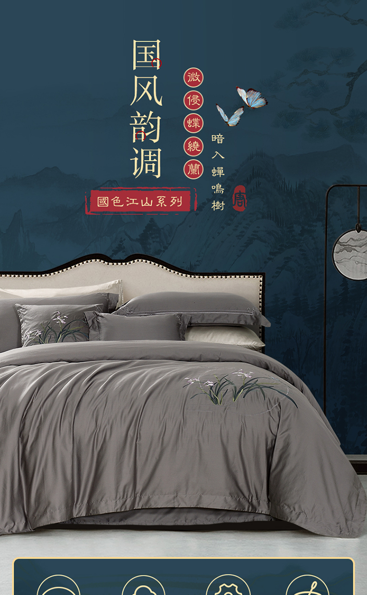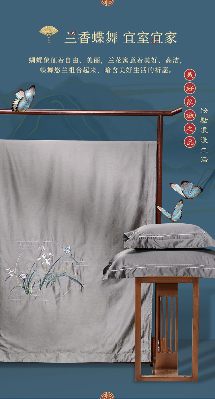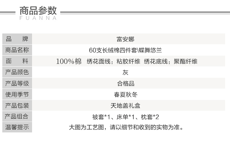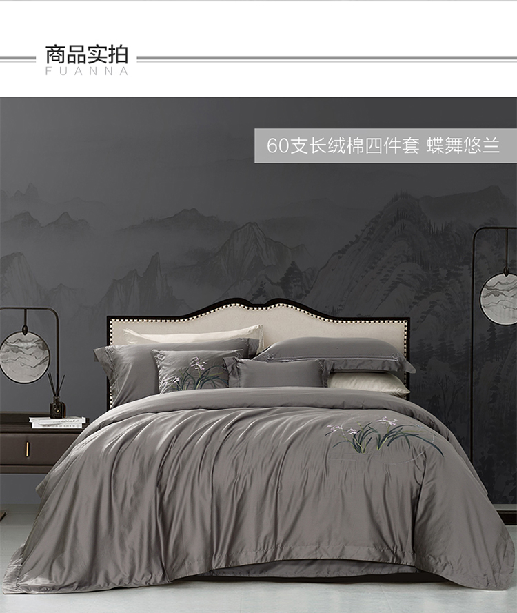 富安娜 床单四件蝶舞悠兰 8110040524185 230*229cm 灰色(单位:套)
