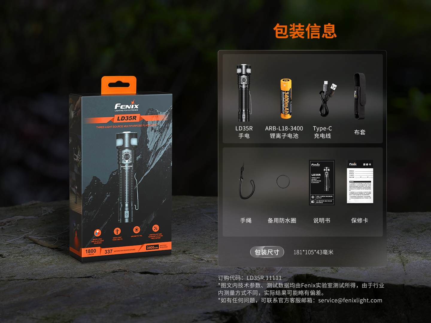 FENIX 勤务手电 LD35R 1800流明337米射程 黑色(单位:套)