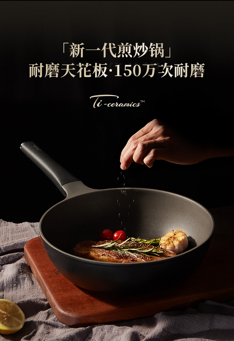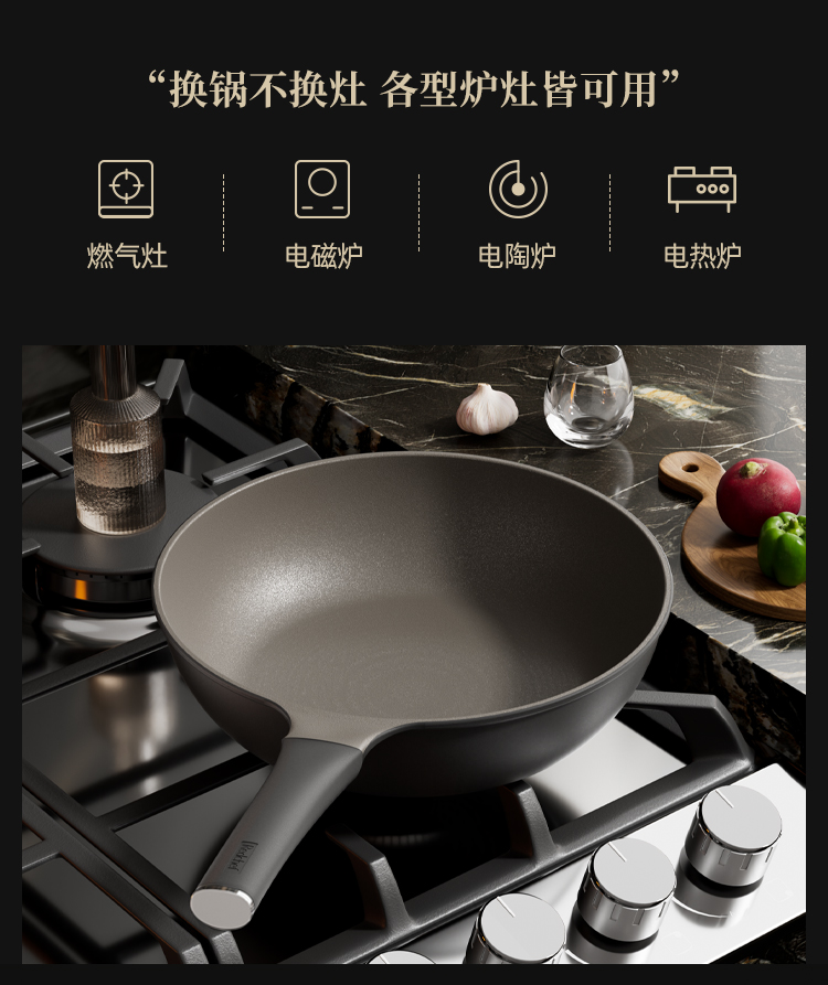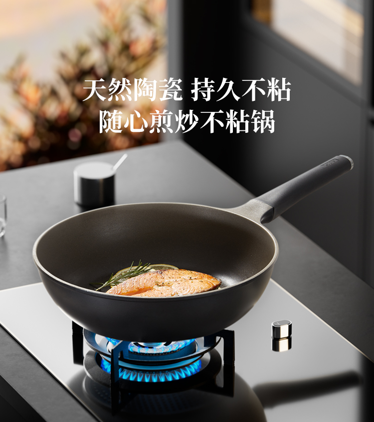 红厨Redchef 黑陶炒锅 HCA32H22-KZ 32cm 曜石黑(单位:个)