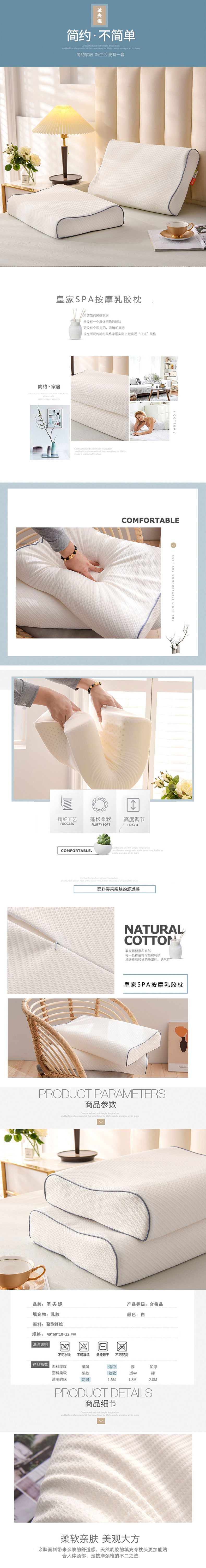 圣夫妮 皇家SPA按摩乳胶枕 SFN-003 40*60cm 白色(单位:只)