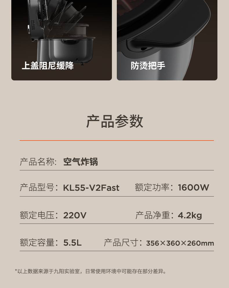 九阳(Joyoung) 空气炸锅 KL55-V2Fast 5.5L 远航灰(单位:台)