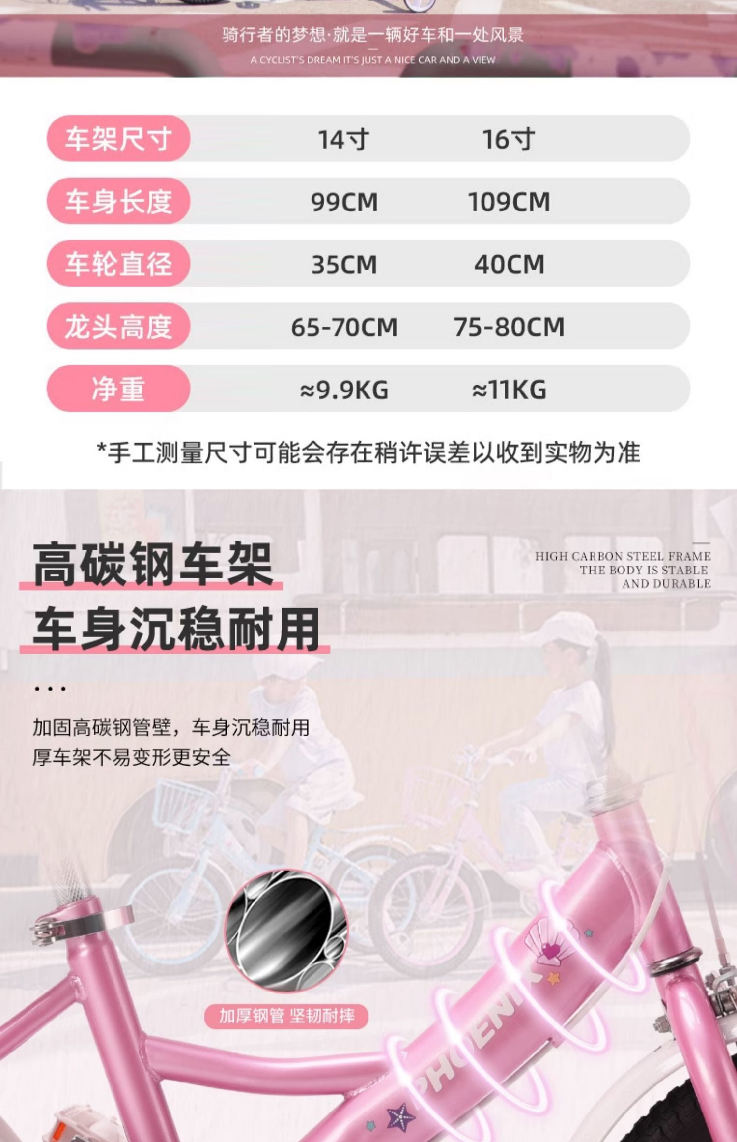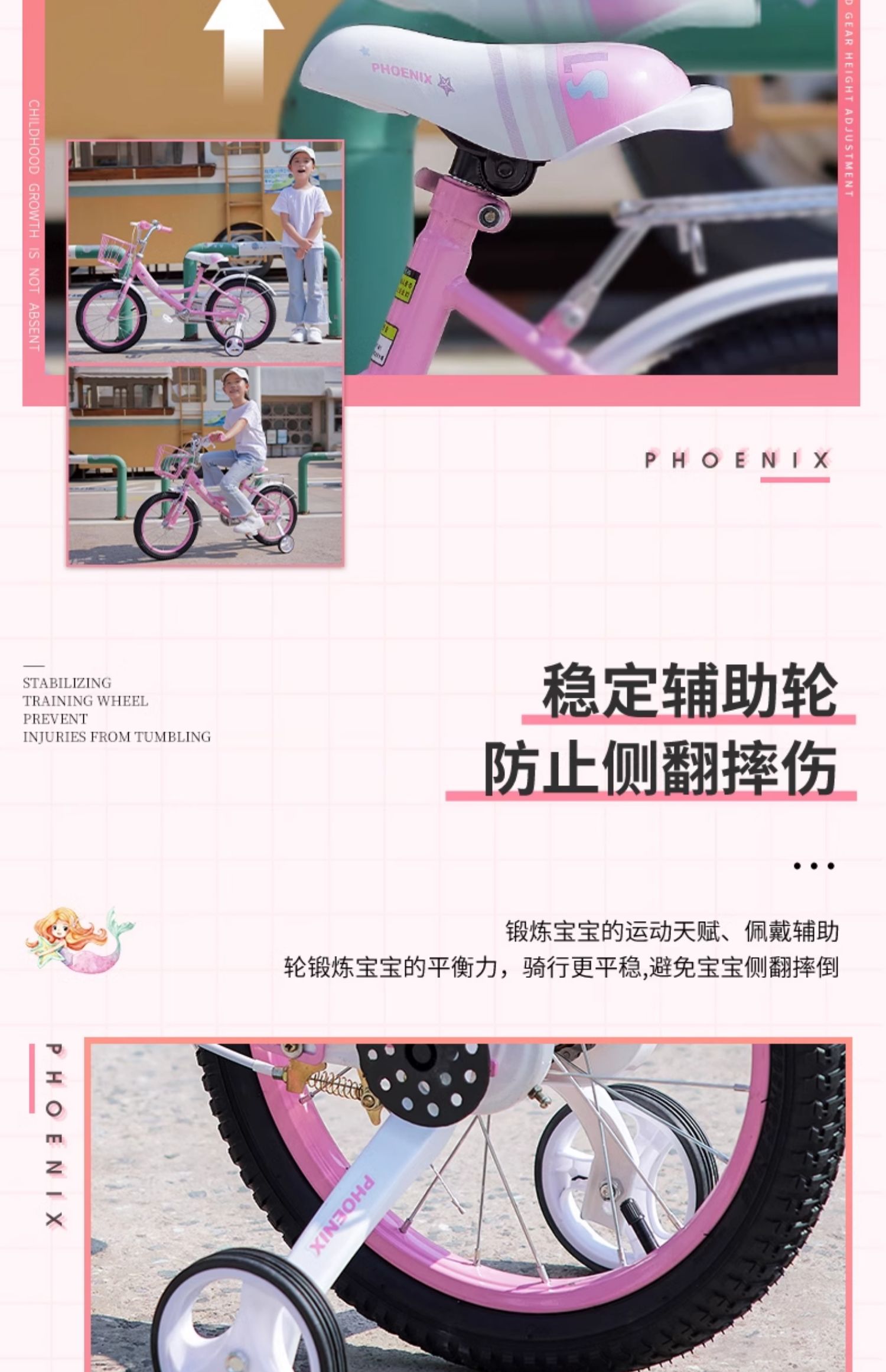 凤凰 儿童自行车 新美人鱼 14寸 粉色(单位:辆)