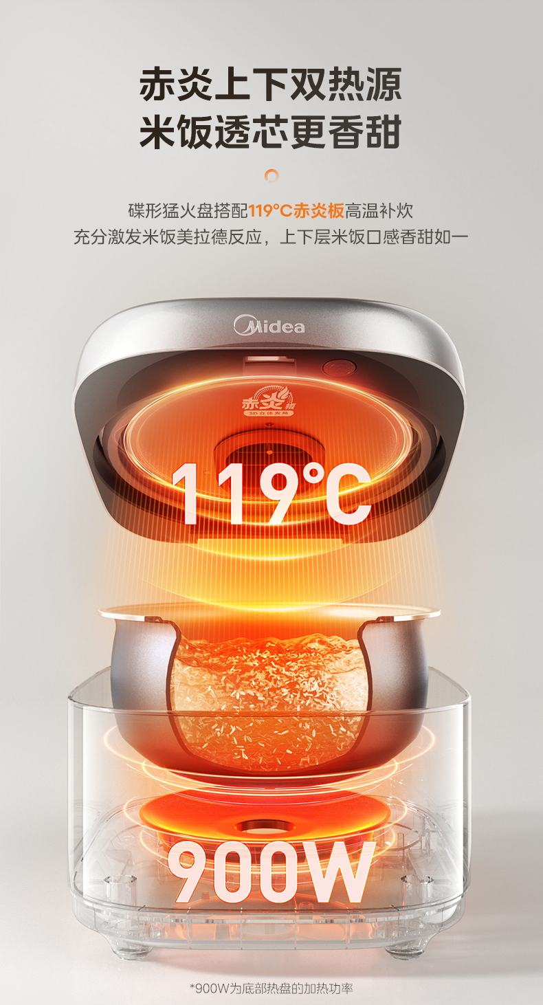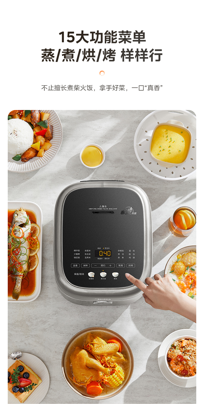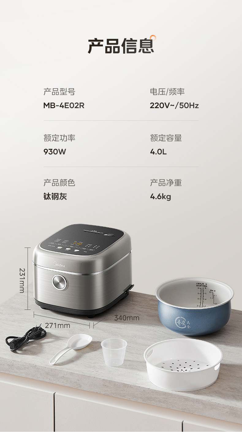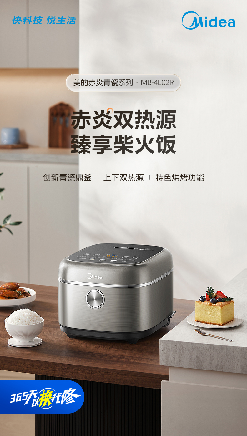美的(Midea) 赤炎双热源 青瓷内胆电饭煲 MB-4E02R 4L 灰色(单位:台)