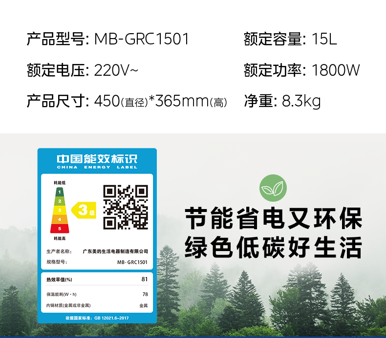美的(Midea) 商用电饭煲 MB-GRC1501 15L 银色(单位:台)