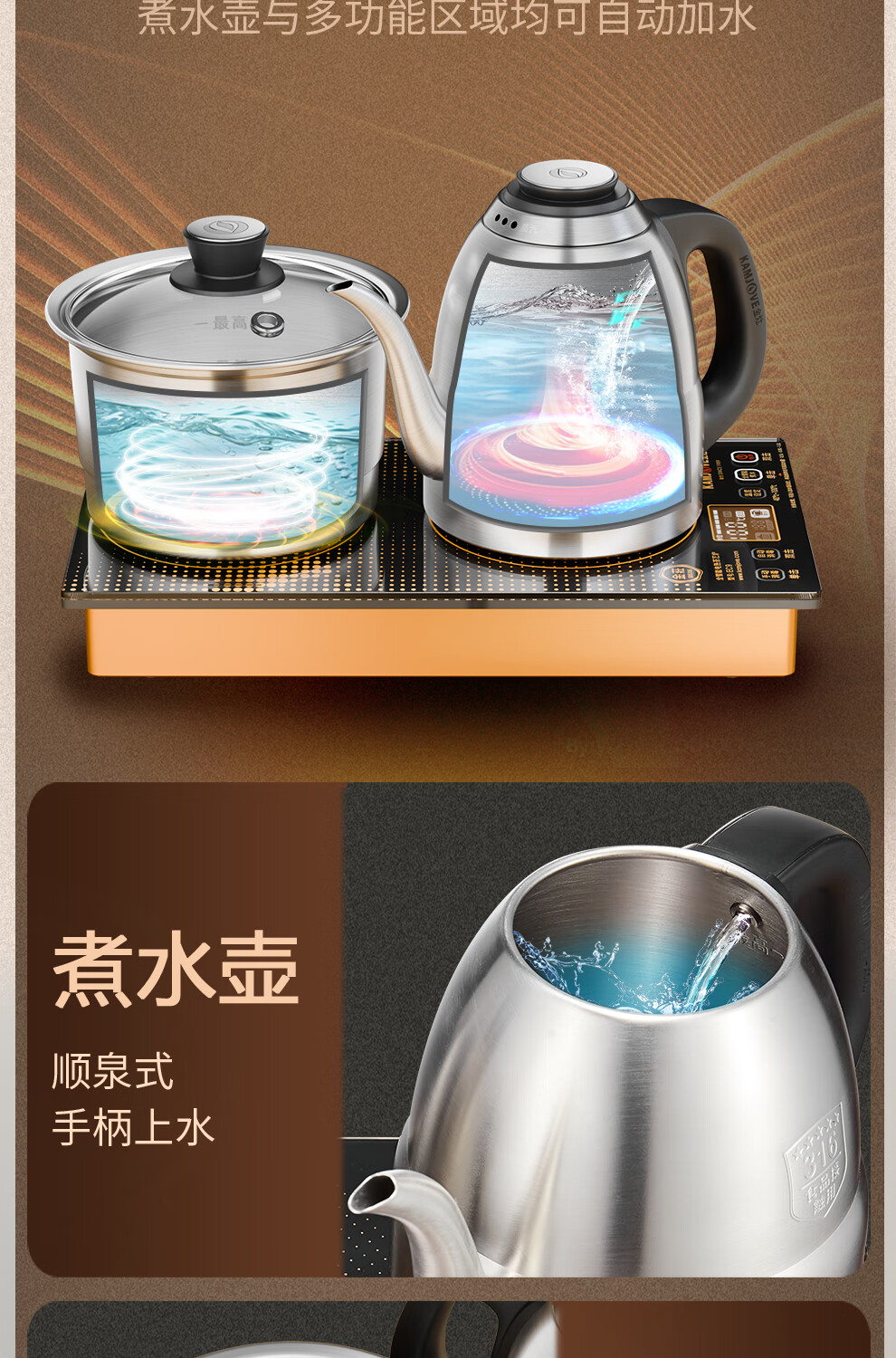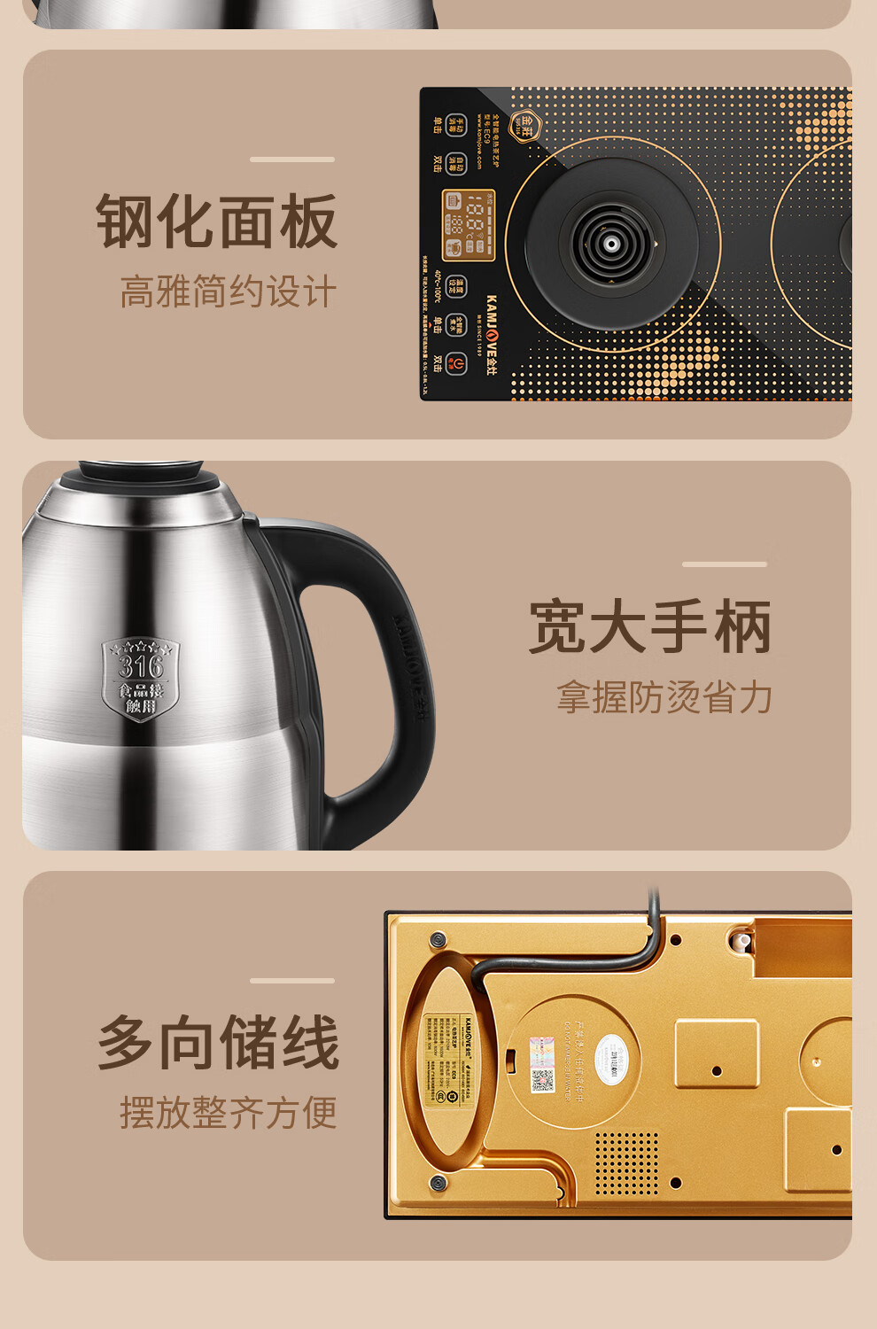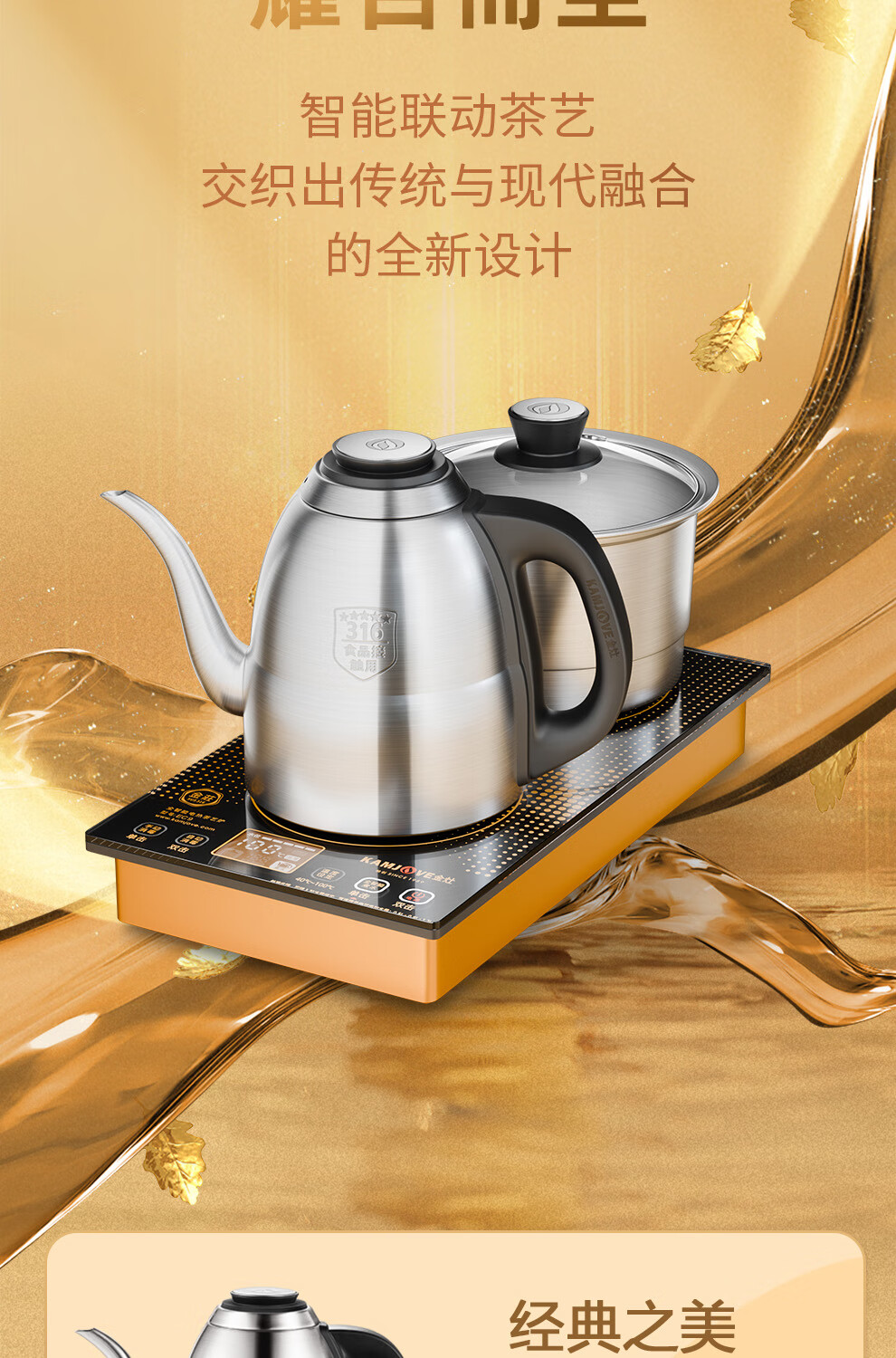 金灶(KAMJOVE) 遥控全自动电茶壶316不锈钢 EC9 1.2L 香槟金(单位:套)