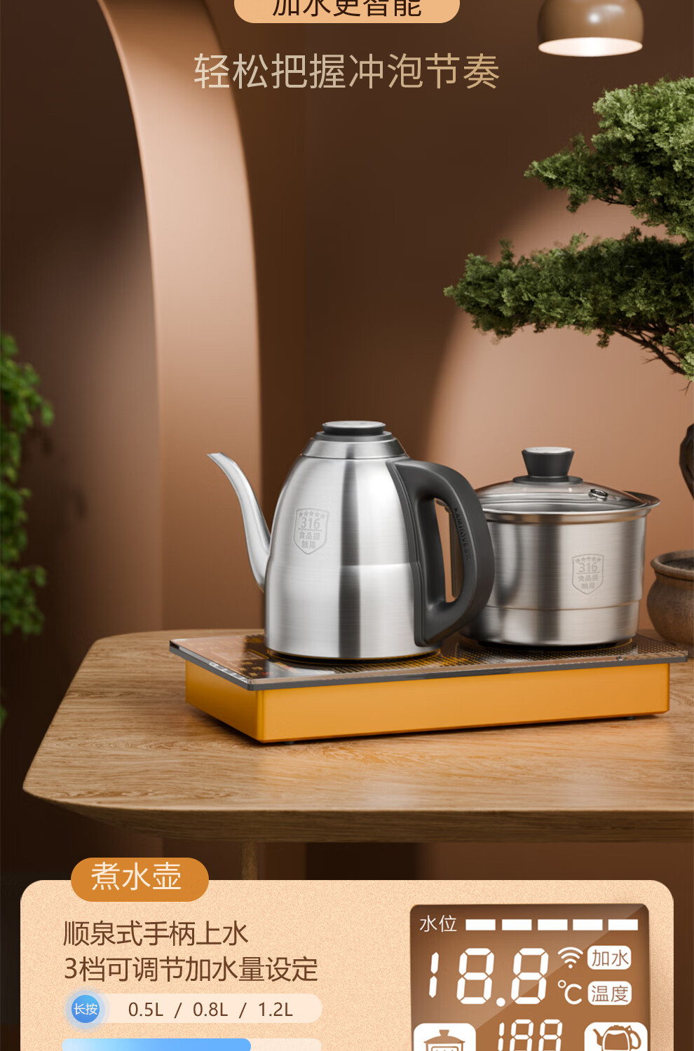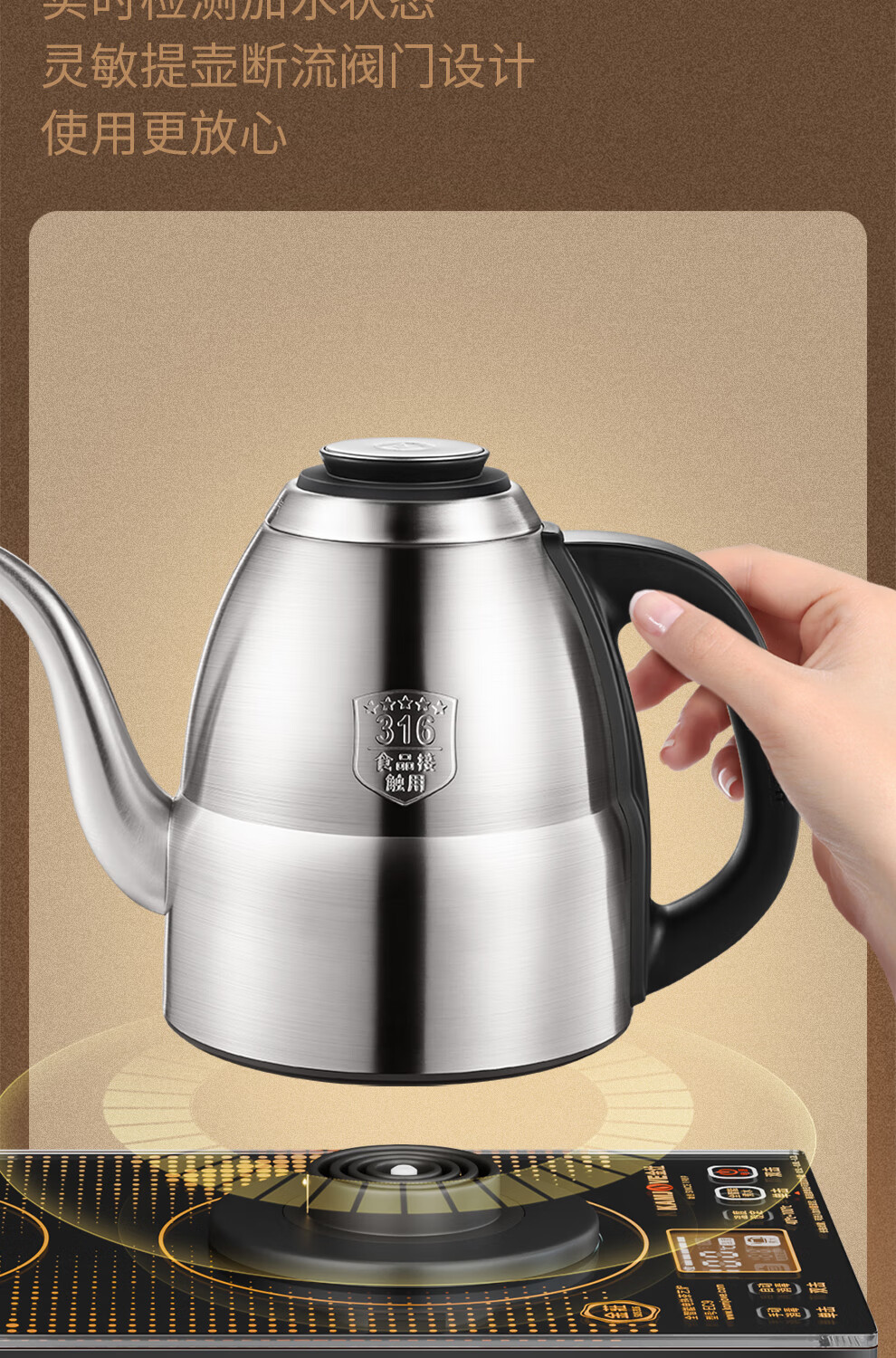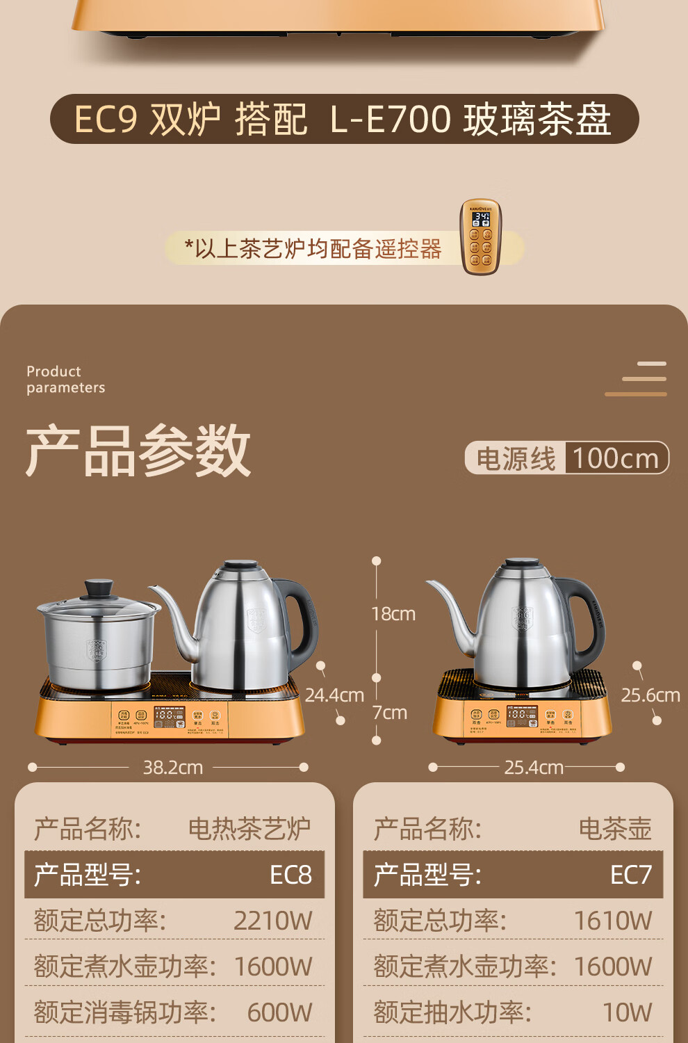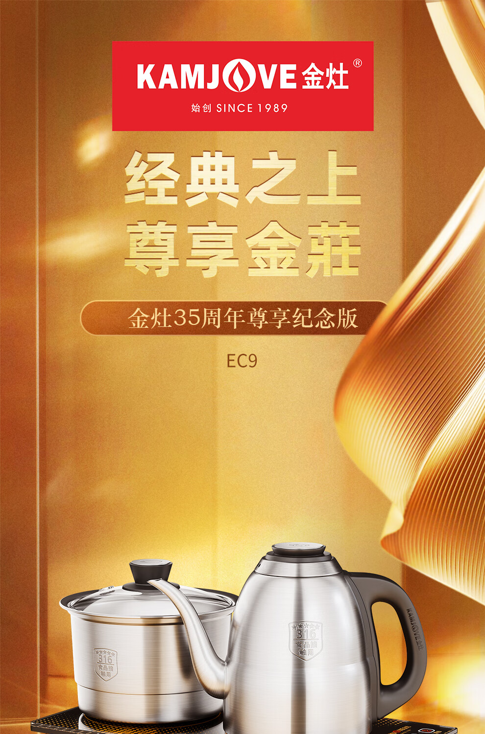 金灶(KAMJOVE) 遥控全自动电茶壶316不锈钢 EC9 1.2L 香槟金(单位:套)