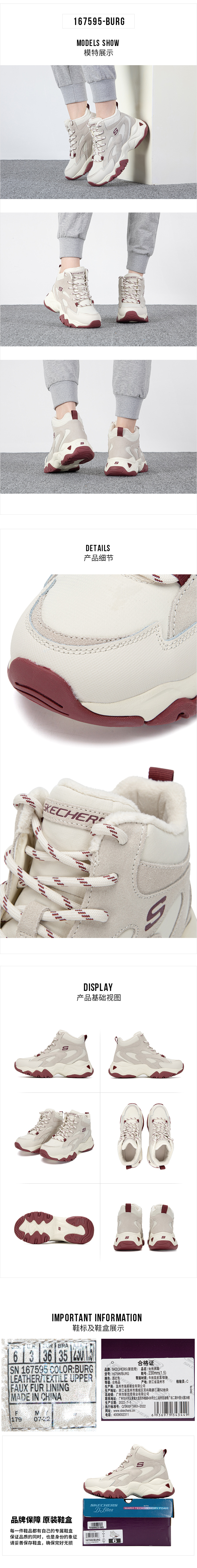 斯凯奇(Skechers) 女运动休闲鞋熊猫鞋 167595-BURG 35 35 酒红色(单位:双)