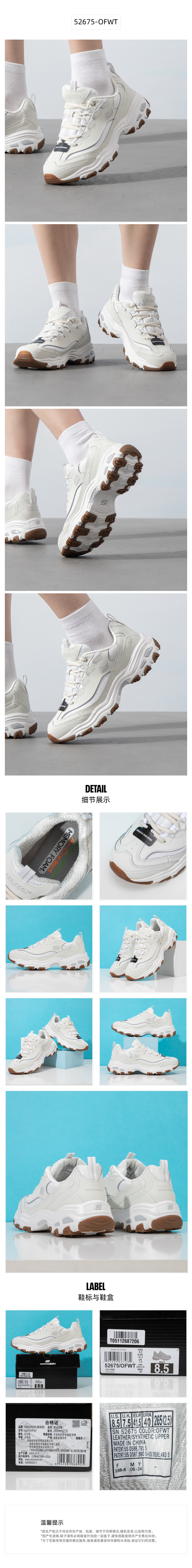 斯凯奇(Skechers) 男休闲鞋熊猫鞋 52675-OFWT 40 40 乳白色(单位:双)