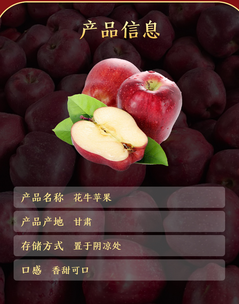 食欲跳动 香甜可口 清脆美味 甘肃高山花牛苹果 8.5斤大果彩箱(单果约80mm ) 黑色(单位:箱)
