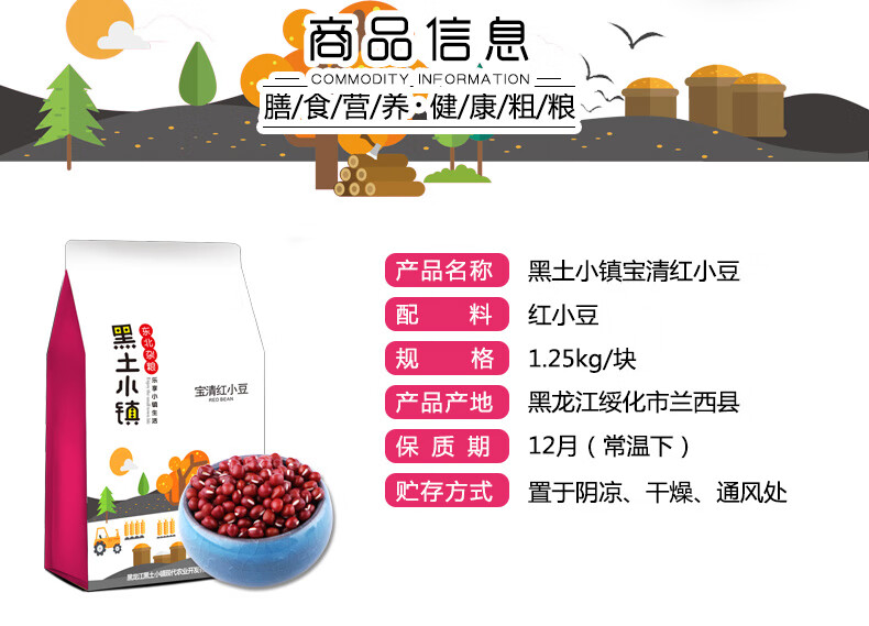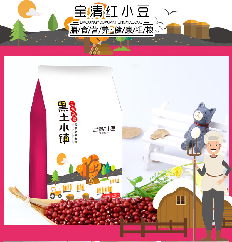 黑土小镇 宝清红小豆 五谷杂粮 1.25kg 混色(单位:袋)