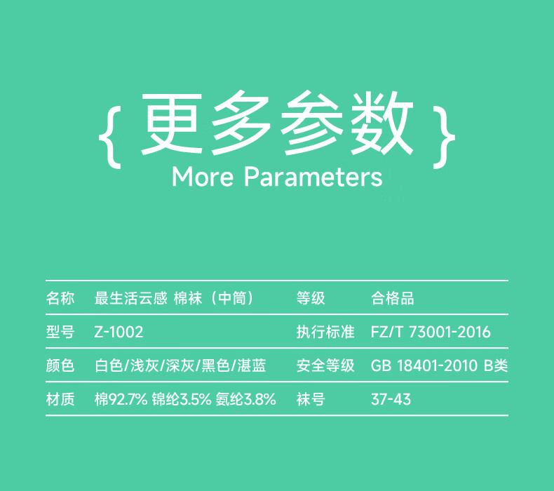 最生活 云感棉袜中筒 Z-1002 5双装 混色(单位:包)