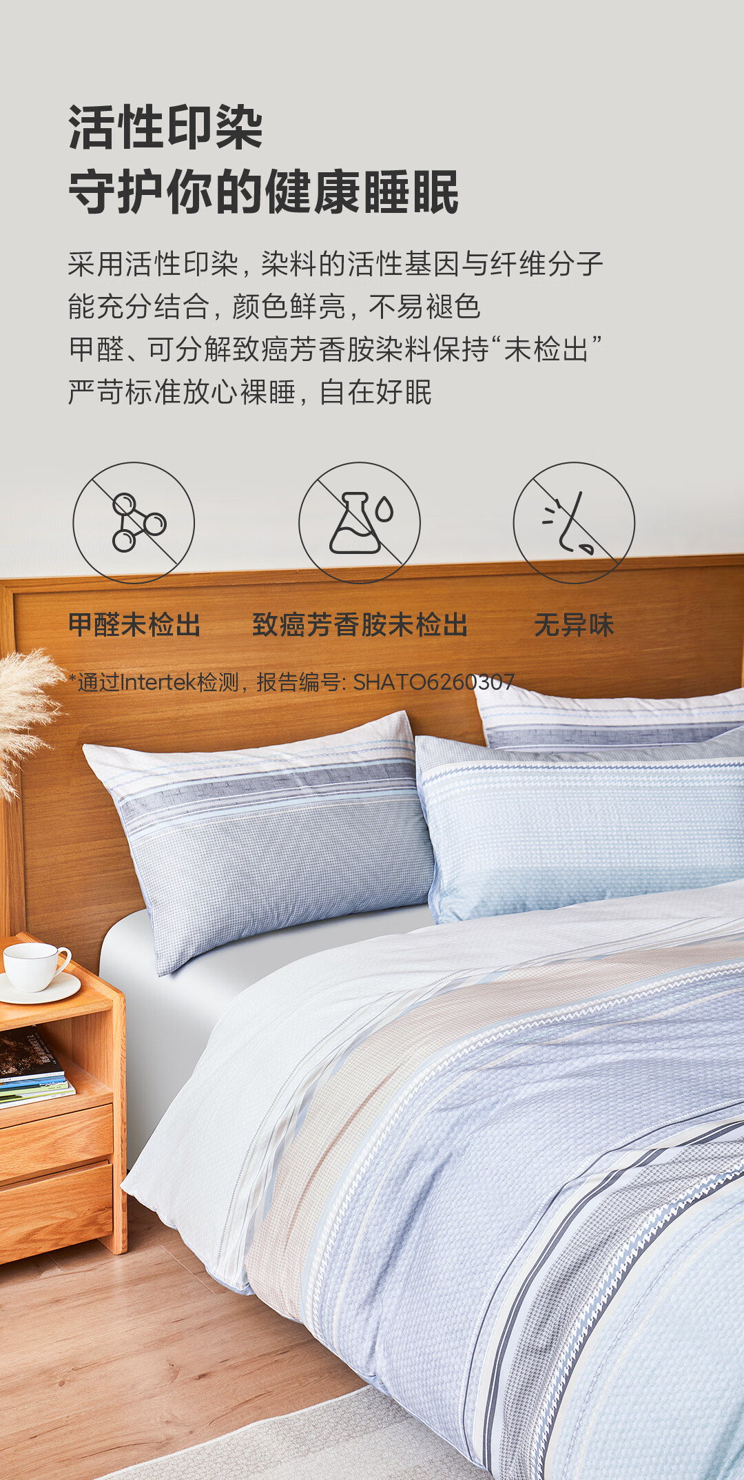 最生活 仲夏时光全棉四件套 Z-8803 被套:200*230cm 床单:230*245cm 灰蓝(单位:套)