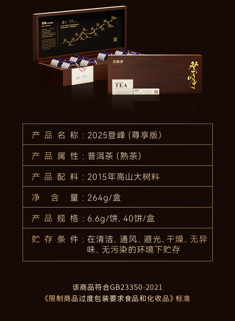 正皓茶 高山大树普洱熟茶 2025登峰尊享版 264g(40小包) 混色(单位:盒)