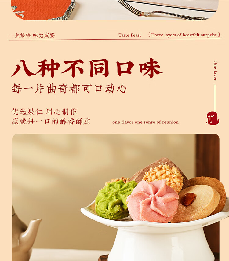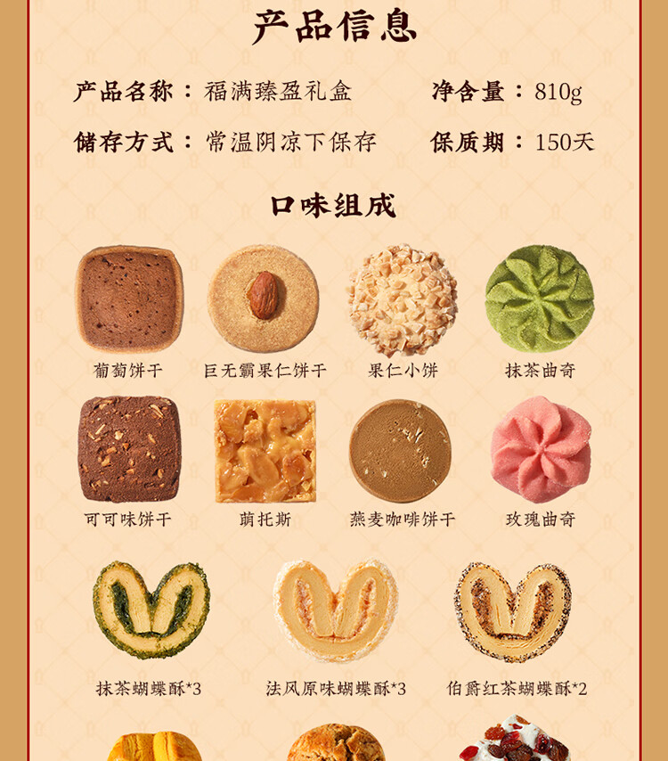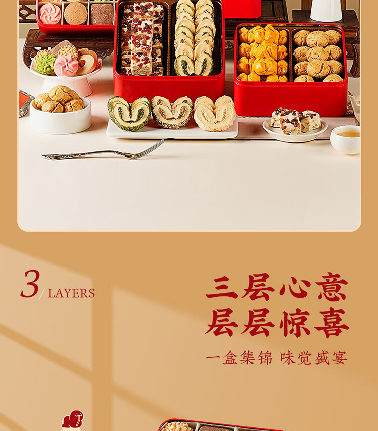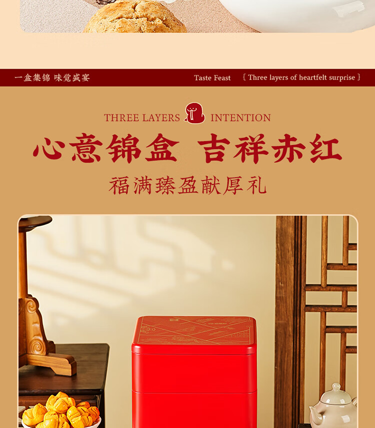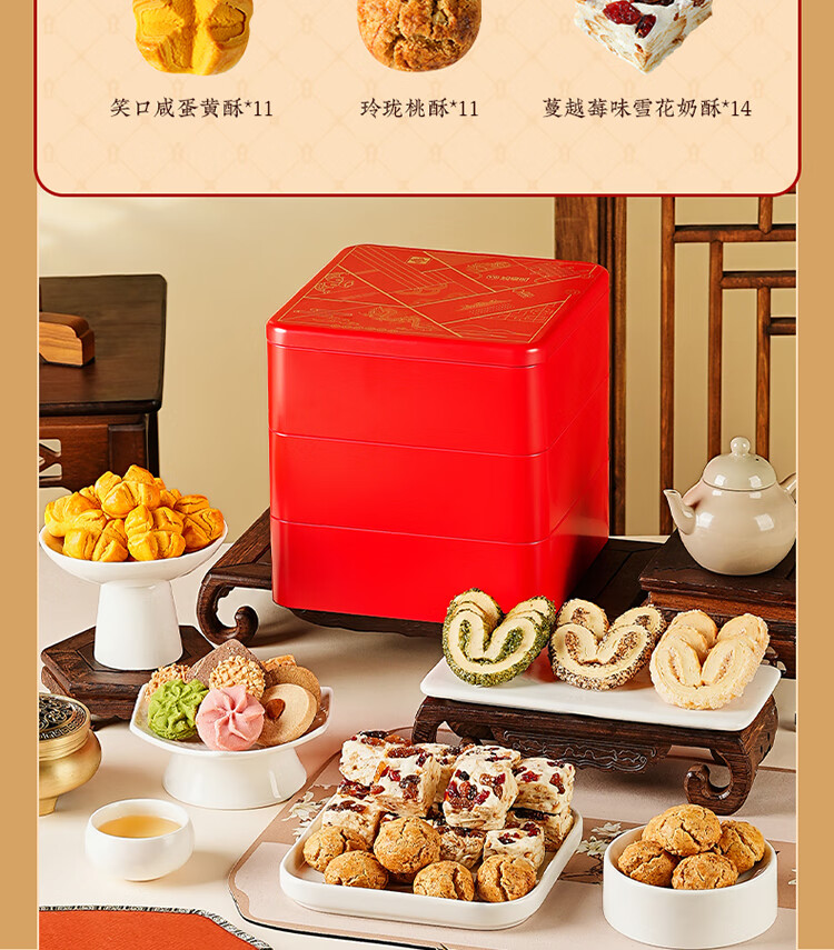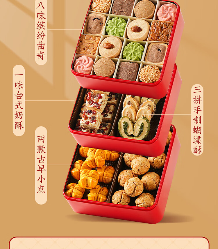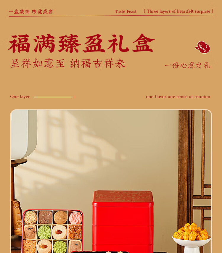 悠享时(YOTIME) 曲奇饼干三层礼盒 福满臻盈 810g 红色(单位:盒)