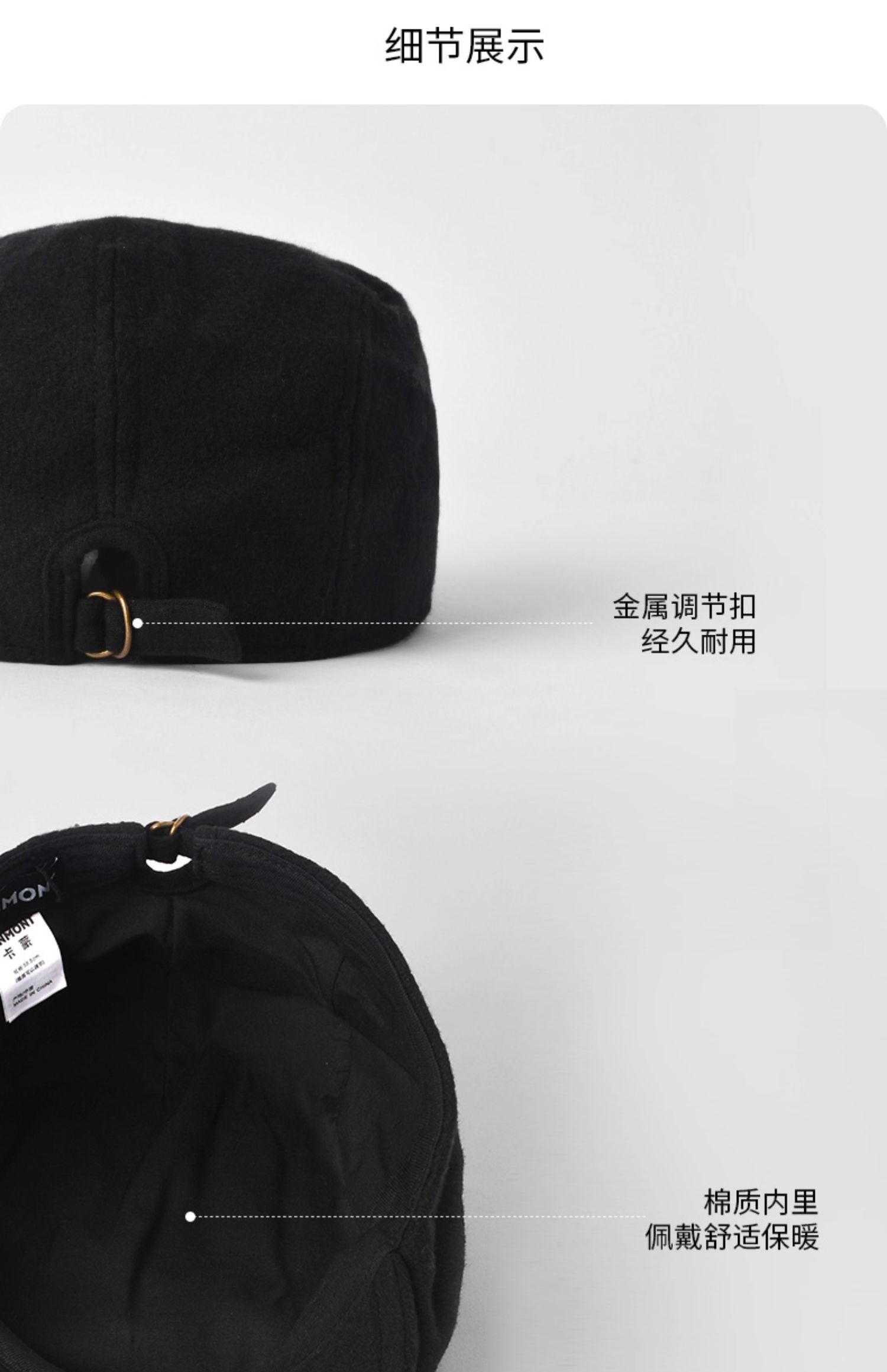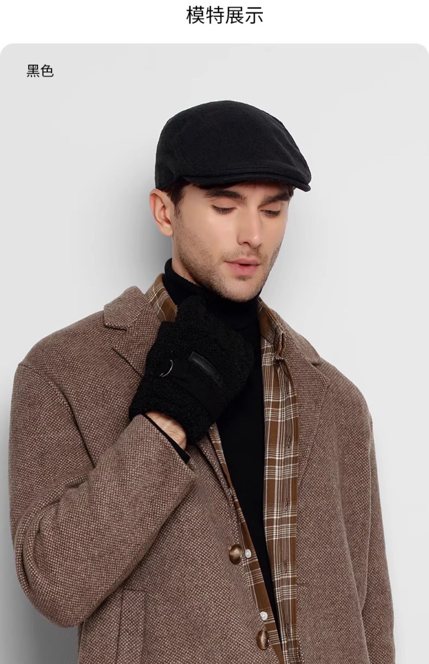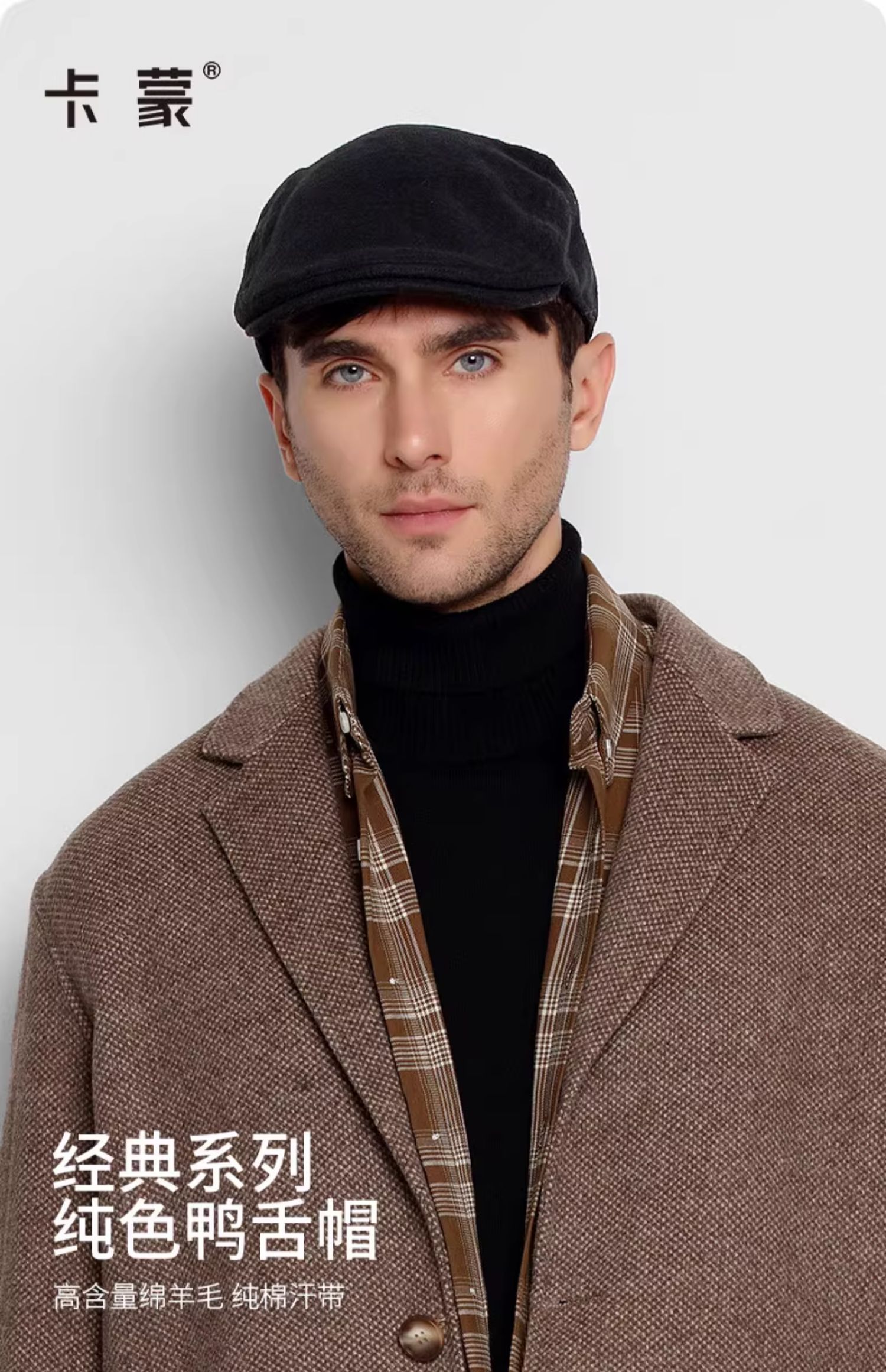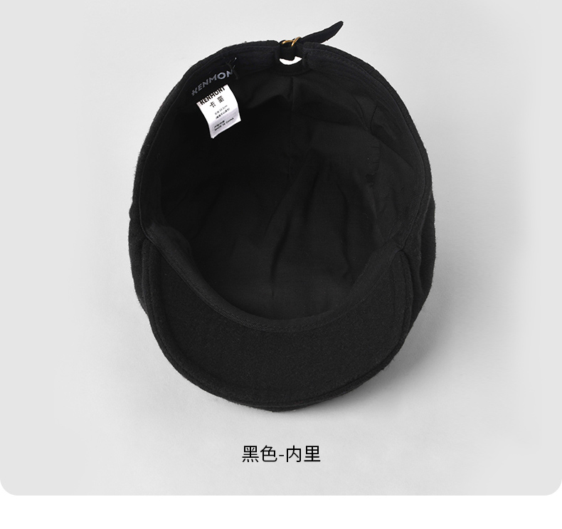 卡蒙(Kenmont) 男士简约复古羊毛呢前进帽 KM-2583-01 可调节(58.5cm) 黑色(单位:顶)