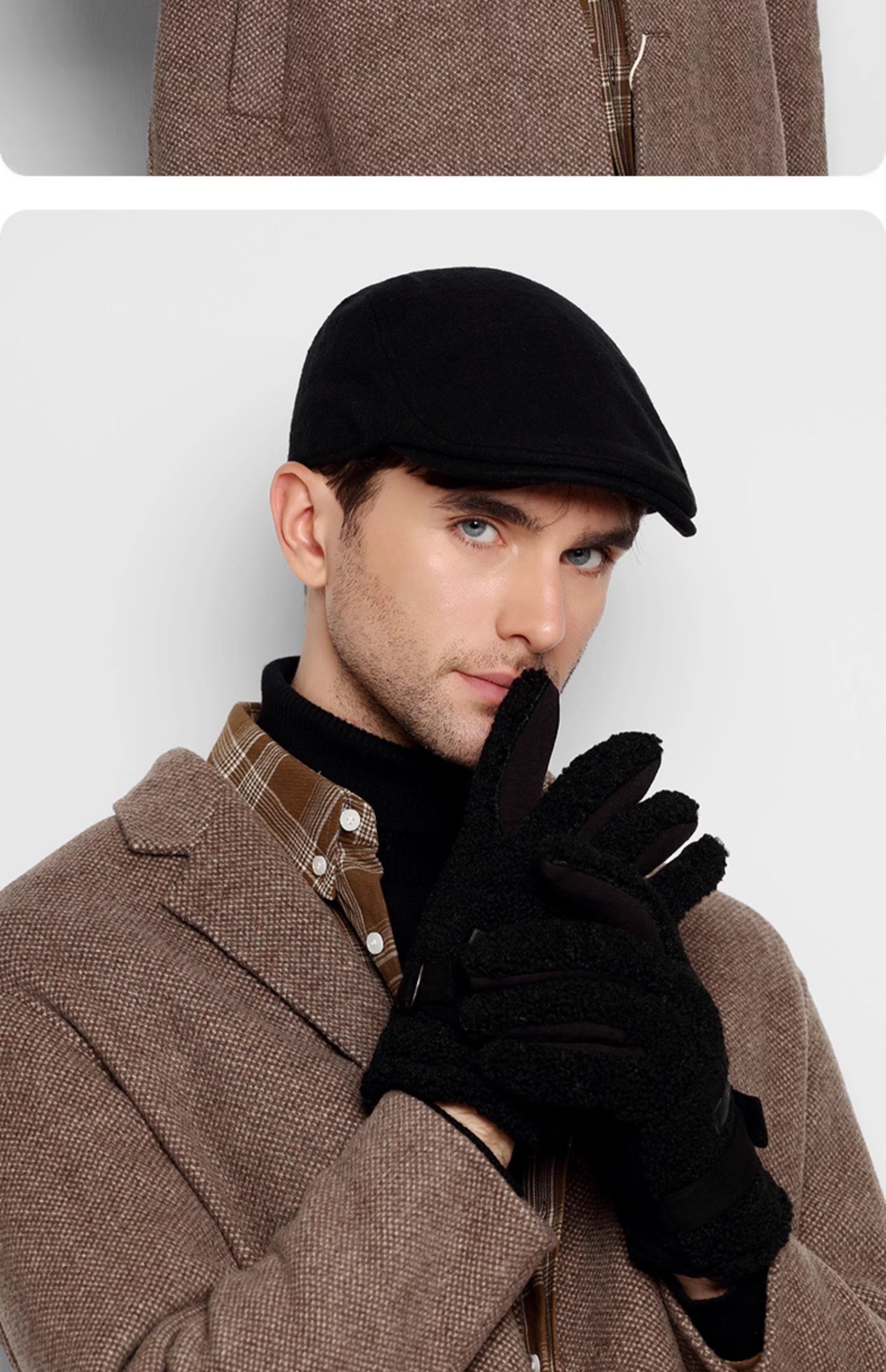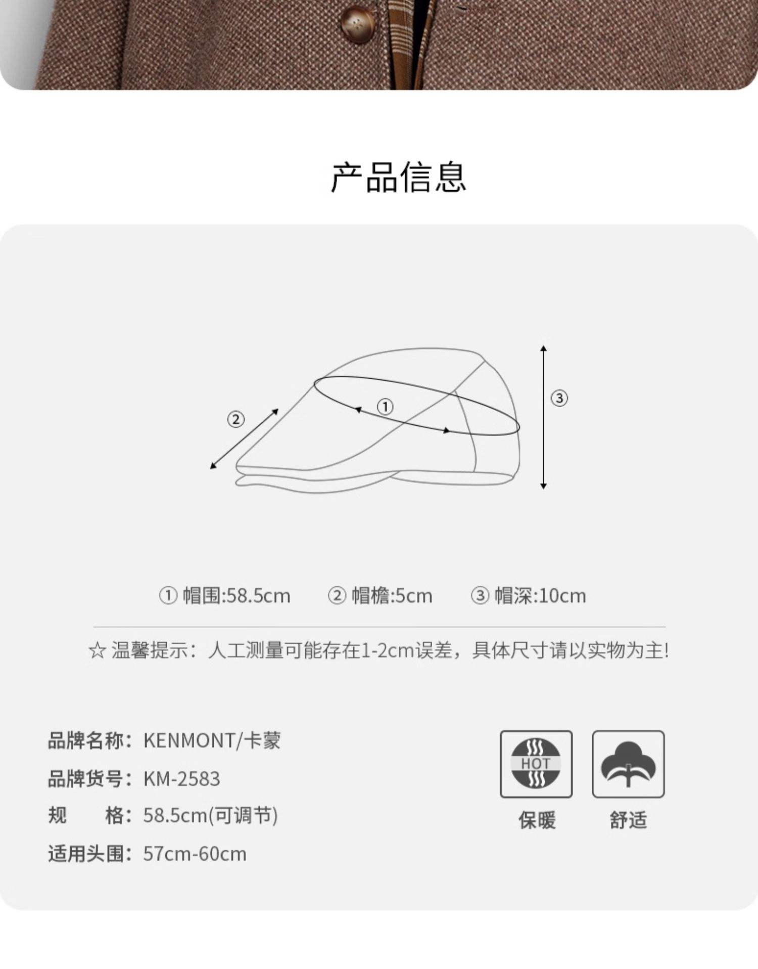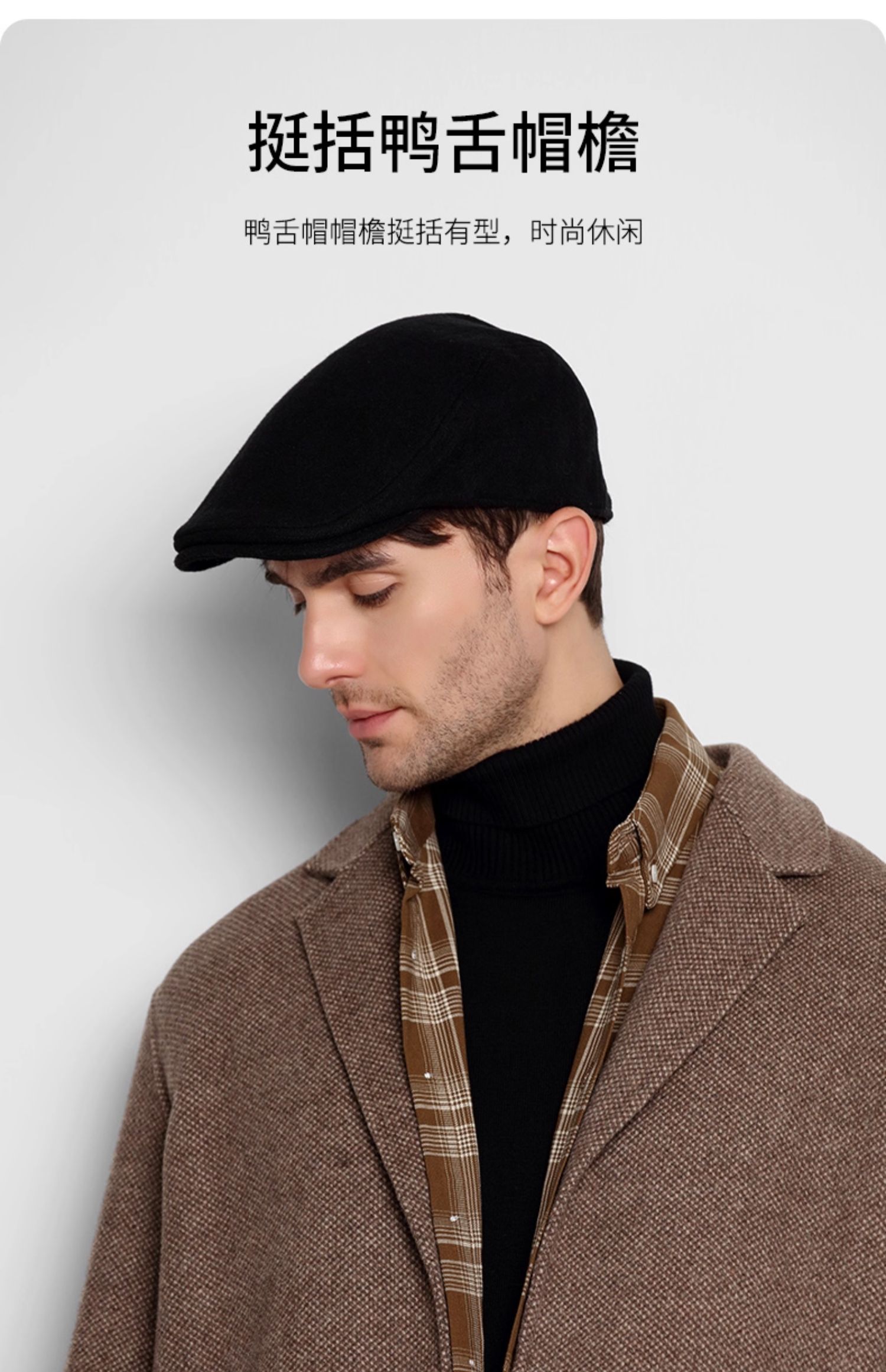 卡蒙(Kenmont) 男士简约复古羊毛呢前进帽 KM-2583-01 可调节(58.5cm) 黑色(单位:顶)