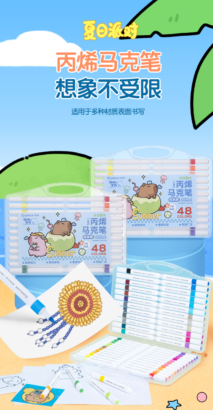 齐心(COMIX) 丙烯马克笔 WHMK0126-48 48支48色 混色(单位:套)