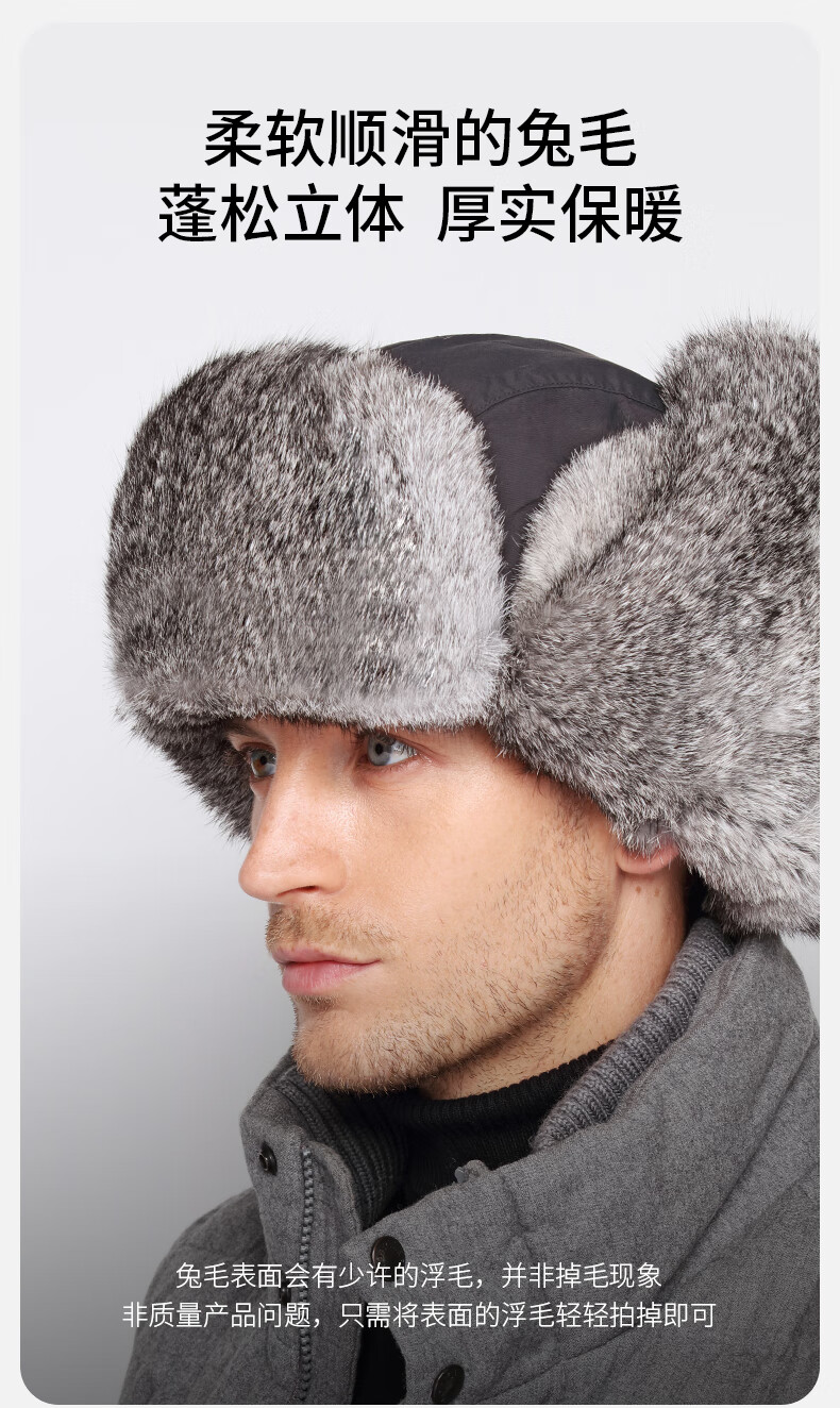 卡蒙(Kenmont) 冬季兔毛绒护耳雷锋帽 KM-2130-01 XL 黑色(单位:顶)