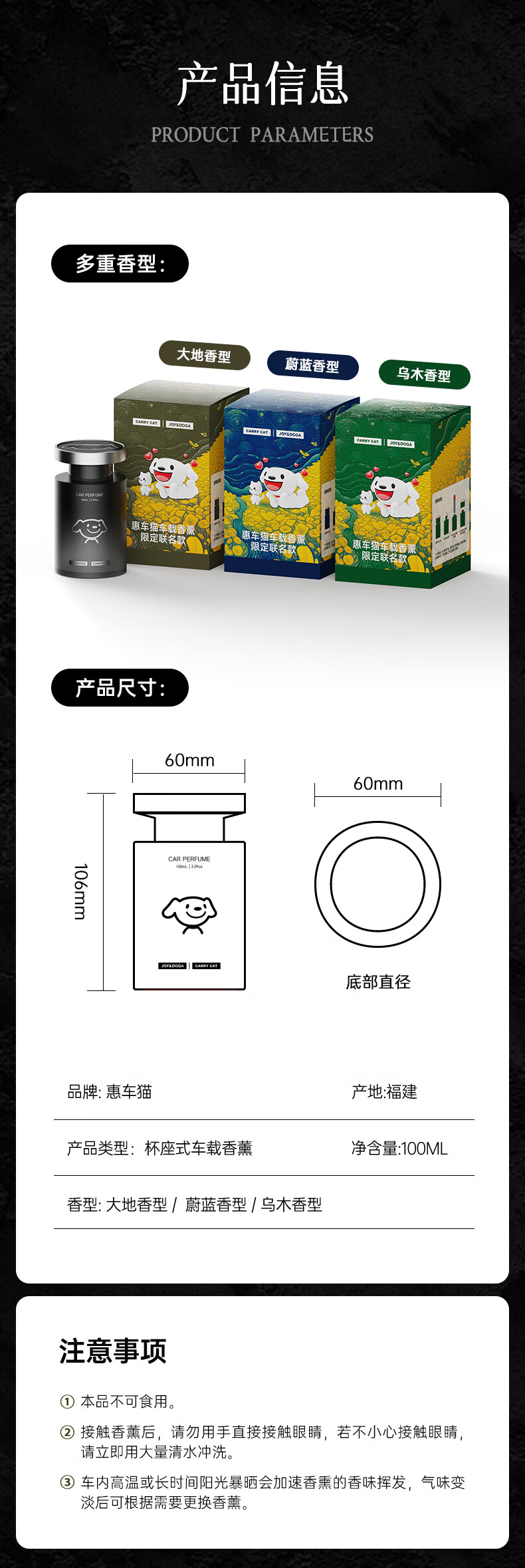 惠车猫 JOY车载香薰汽车香水男士车用高级香氛持久留香车内除异味 乌木 100ml 绿茶(单位:瓶)