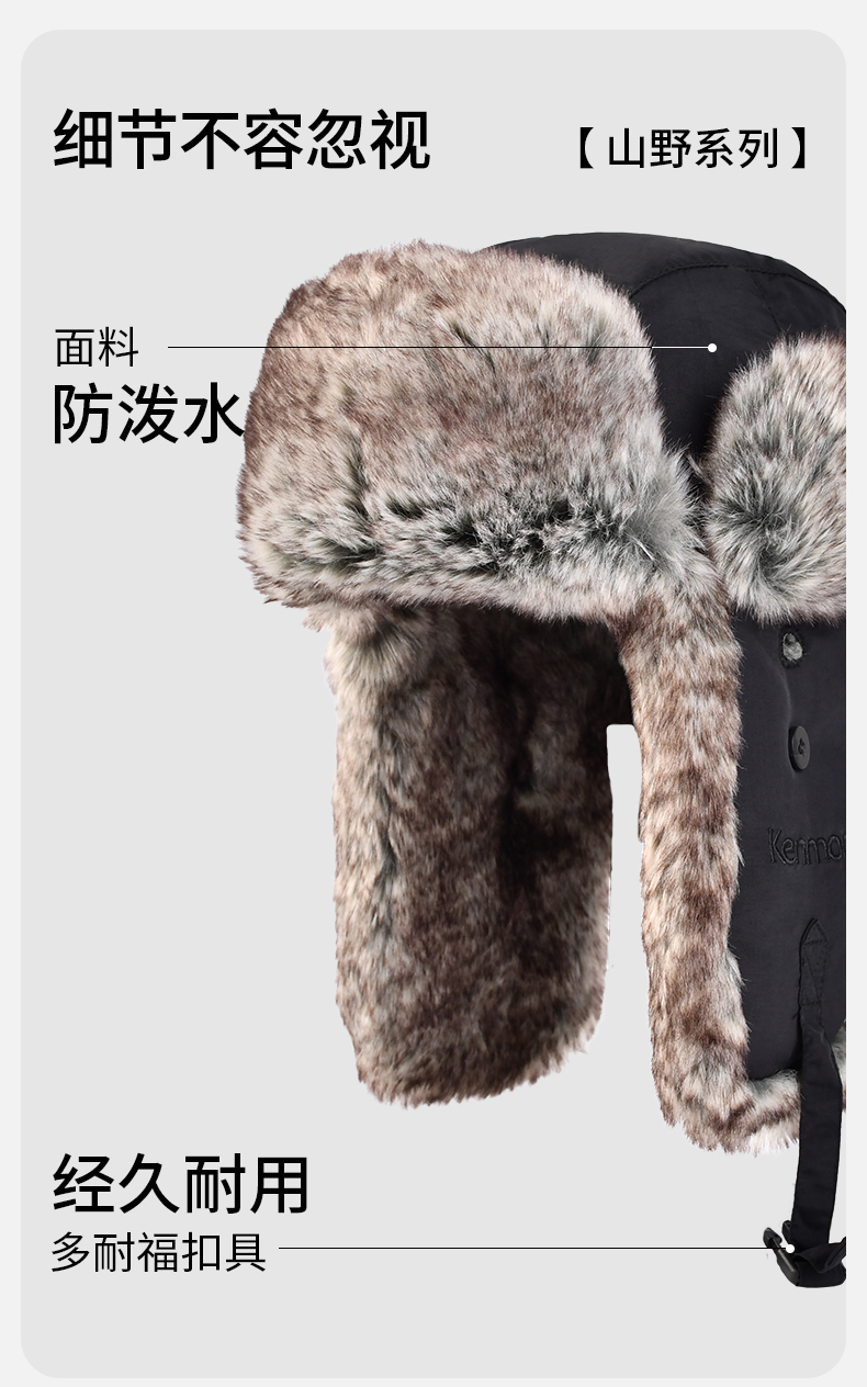 卡蒙(Kenmont) 三防太空棉加厚毛绒雷锋帽 KM-2150-01 XL 黑色(单位:顶)