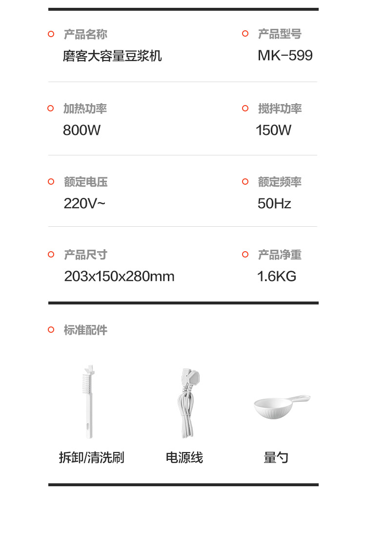 磨客(MOKKOM) 大容量可拆刀头豆浆机 MK-599W 1200ml 白色(单位:台)