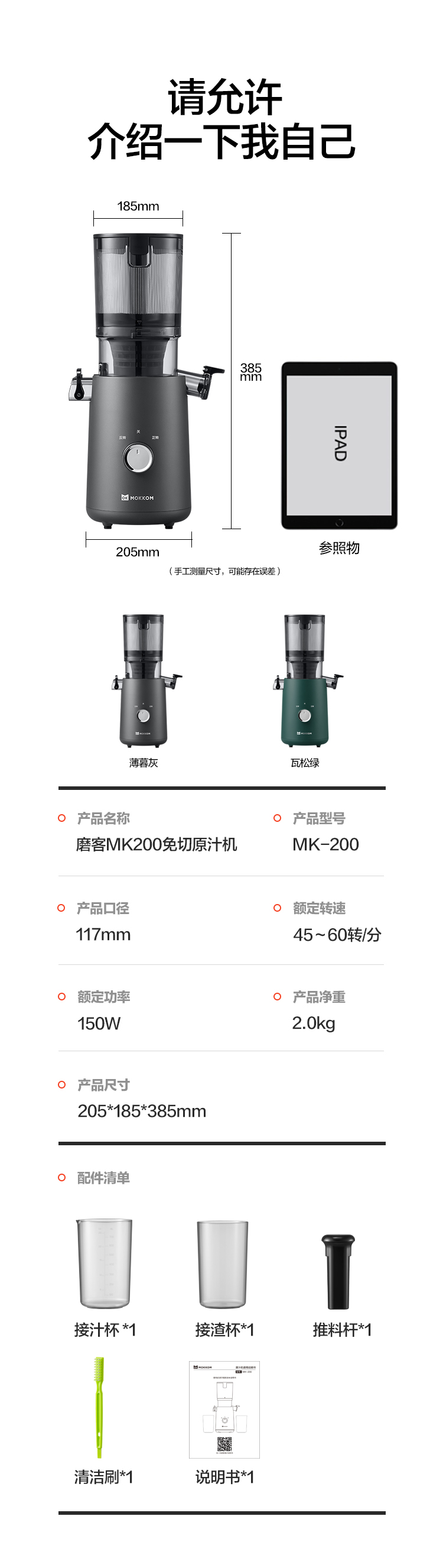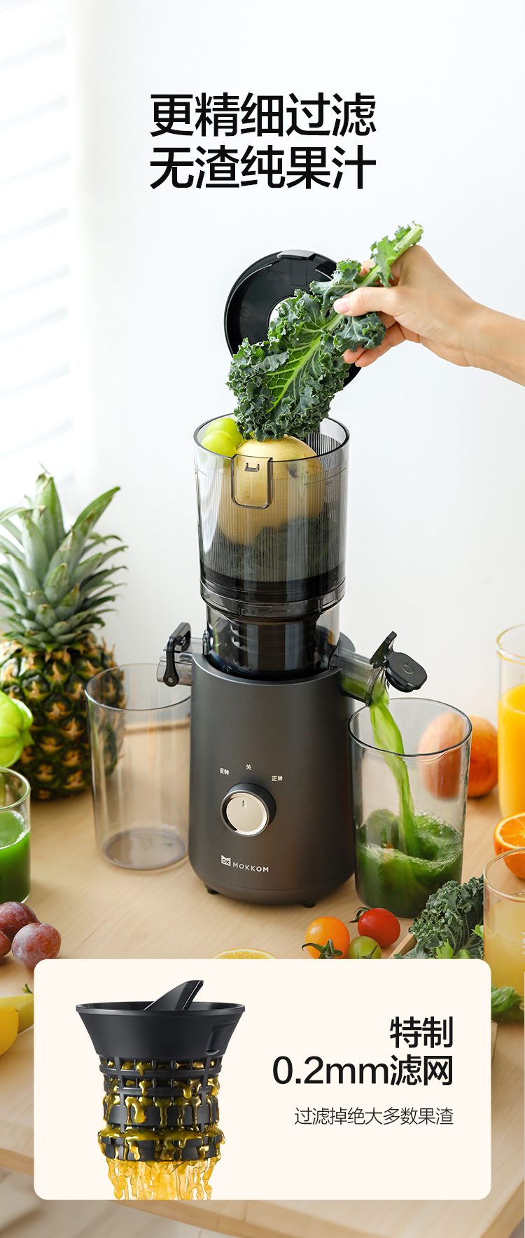 磨客(MOKKOM) 免切大口径原汁机 MK-200-G 1100ml 薄暮灰(单位:台)