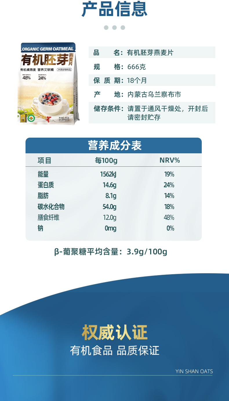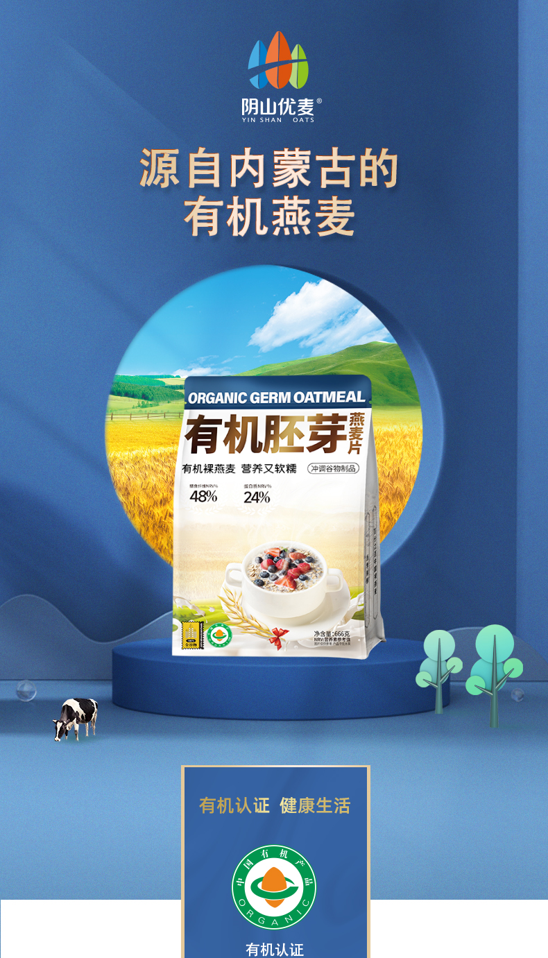 阴山优麦 内蒙古 有机胚芽燕麦片 1.08千克 极光蓝(单位:桶)