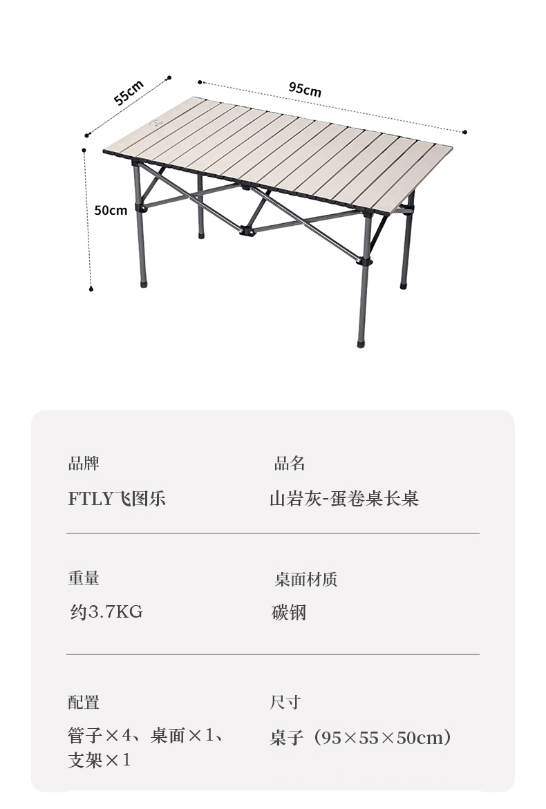 飞图乐(FTLY) 蛋卷桌长桌 DJZ0702 95×55×50cm 山岩灰(单位:个)