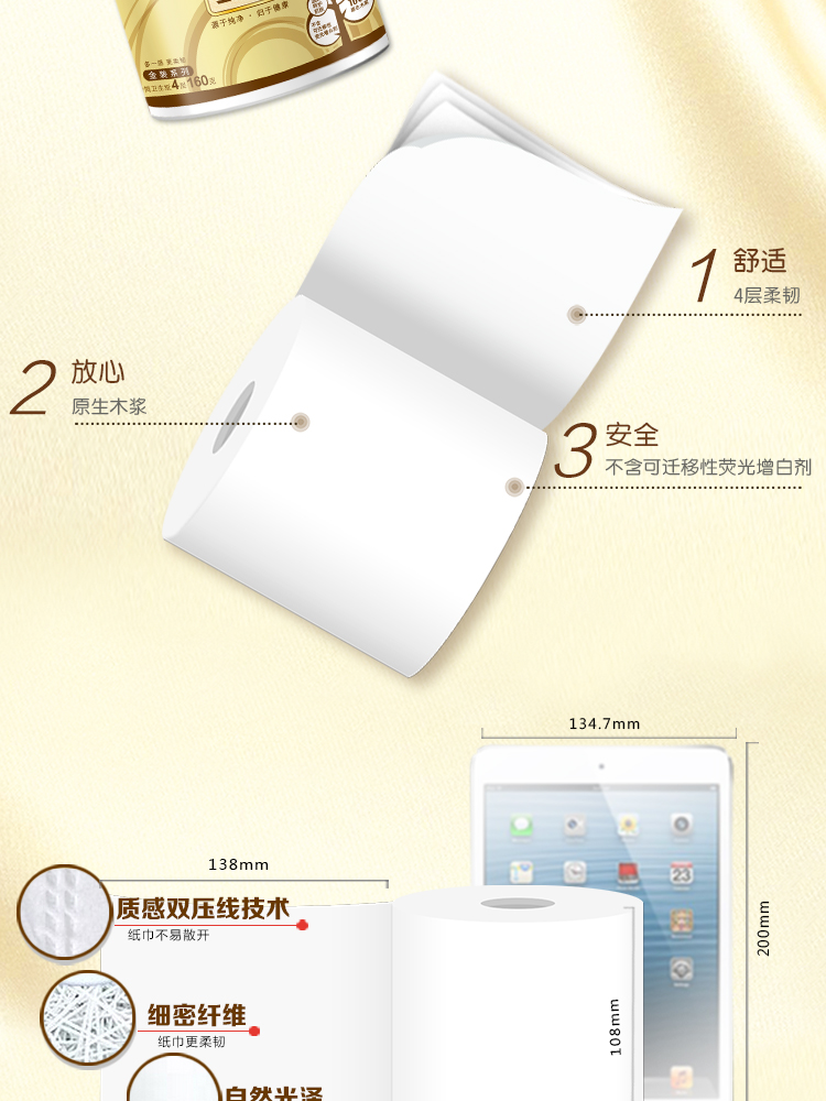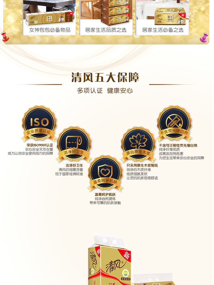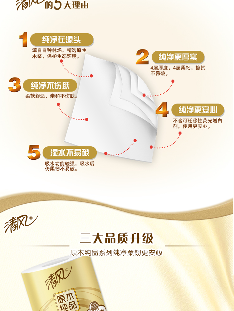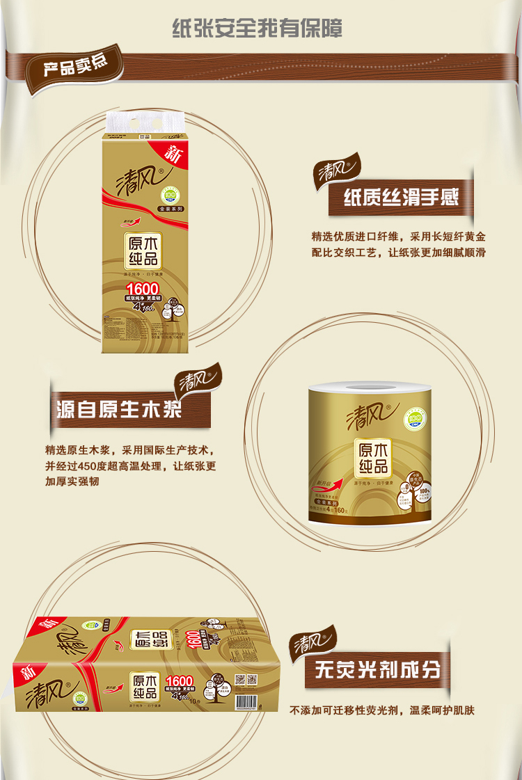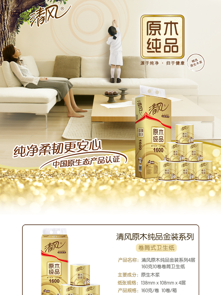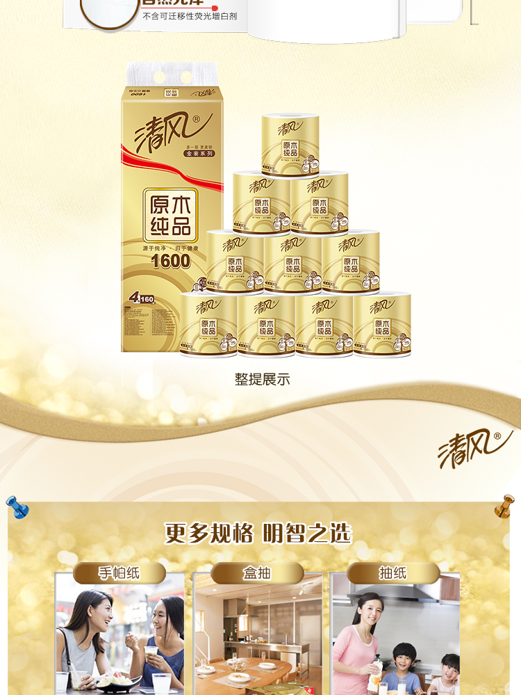 清风 卷筒纸 B20A6J 4层*160克*10卷 玫瑰金(单位:提)